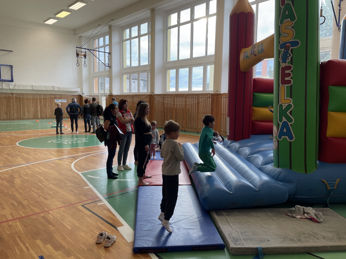 Poté se děti přesunuly do tělocvičen, kde pro ně byl přichystaný skákací hrad a spousta dalších aktivit.