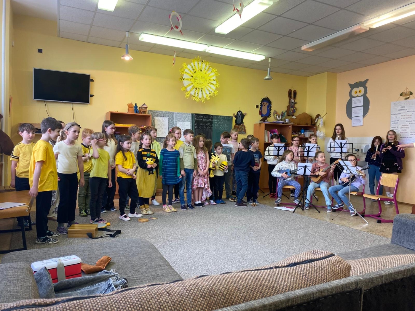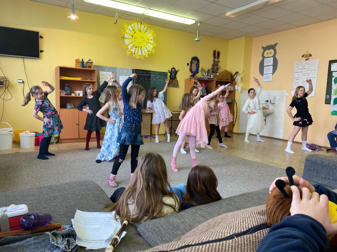 Dne 17. 3. 2026 uspořádali družinoví zpěváci, instrumentalisté a tanečníci vystoupení pro své sourozence, kamarády a paní učitelky z mateřské školy. Obecenstvo bylo velmi vnímavé a aktivně se zapojilo do programu.