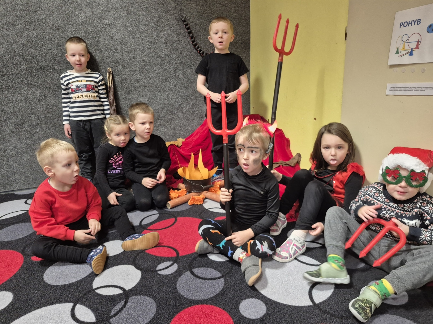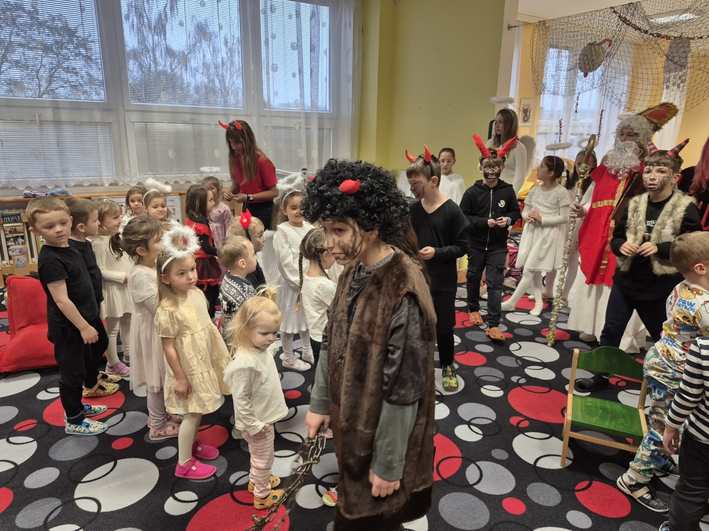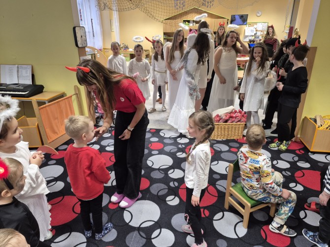Na začátku prosince nás navštívila Mikulášova družina, aby se podívala jesli jsou děti ve Hvězdičkách hodné nebo ne. Prospěli jsme s malým upozorněním na občasný problém s úklidem, kdy jsme slíbili, že to do příště vypilujeme. Dostali jsme balíček a už si jen užívali veselý den ve školce.