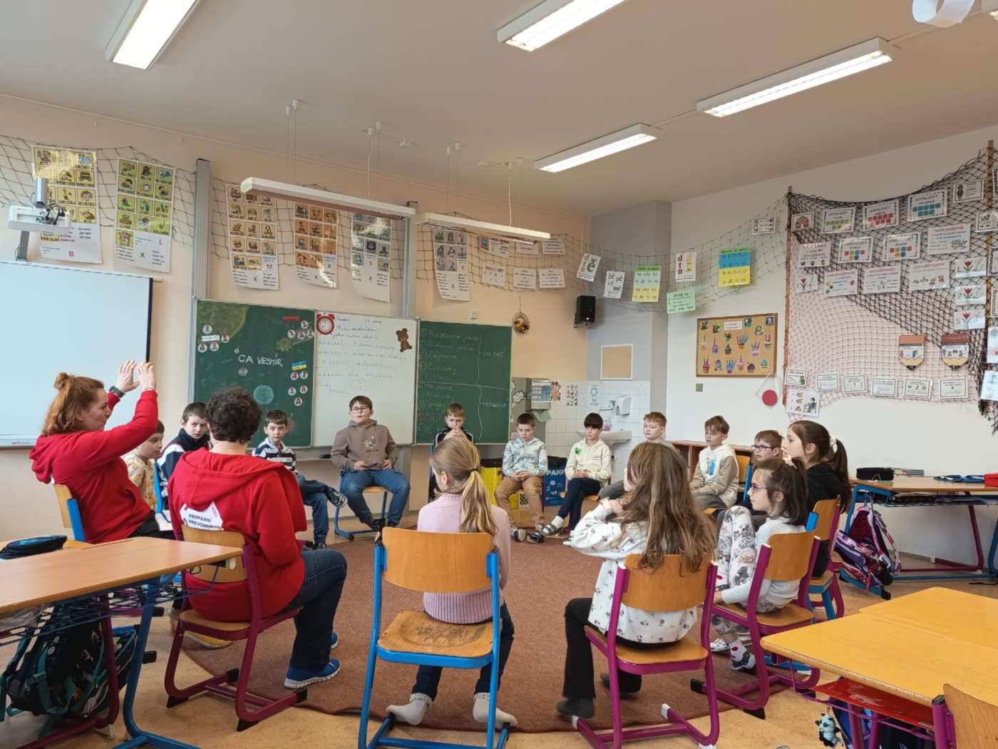 Hned na úvod se děti zamýšlely nad tím, co je jako třídu spojuje a koho by chtěly lépe poznat. Společné sdílení je přivedlo k uvědomění, že i když je každý jiný, mají mnoho společného a tvoří tým, který drží při sobě.