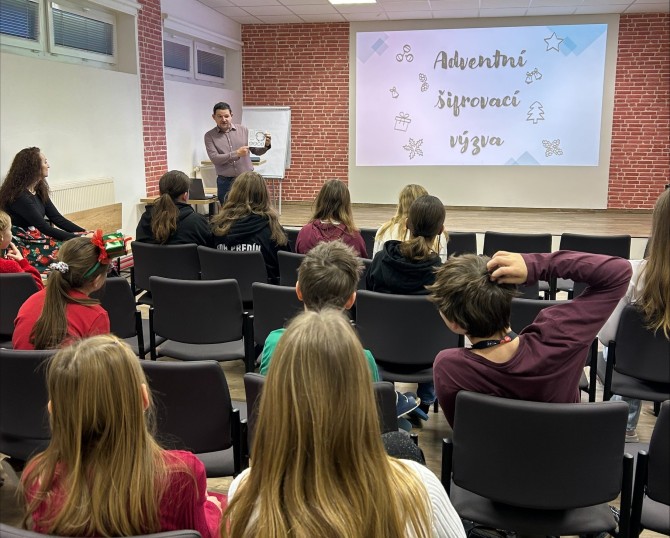 V prosinci měla naše škola netradiční adventní zpestření – Adventní šifrovací výzvu. Místo čokolády čekala na účastníky v tomto speciálním „Adventním kalendáři“ každý den jedna originální šifra, kterou měli týmy vyřešit a odevzdat do následujícího dne. Do luštění se pustili nejen žáci, ale také zaměstnanci školy, takže o pestrou směsici týmů rozhodně nebyla nouze.