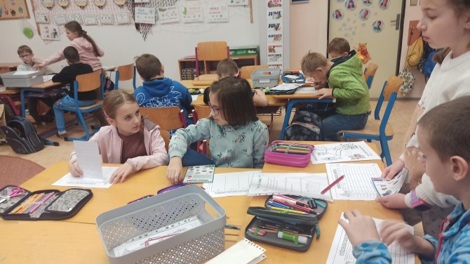 V centru čtení a psaní žáci pracovali s texty o vánočních tradicích a vyhledávali zajímavé informace, které pečlivě zapisovali do tabulky. Dozvěděli se například, kde se na Štědrý den jí rybí polévka, nebo která země zdobí vánoční stromek netradičními ozdobami.