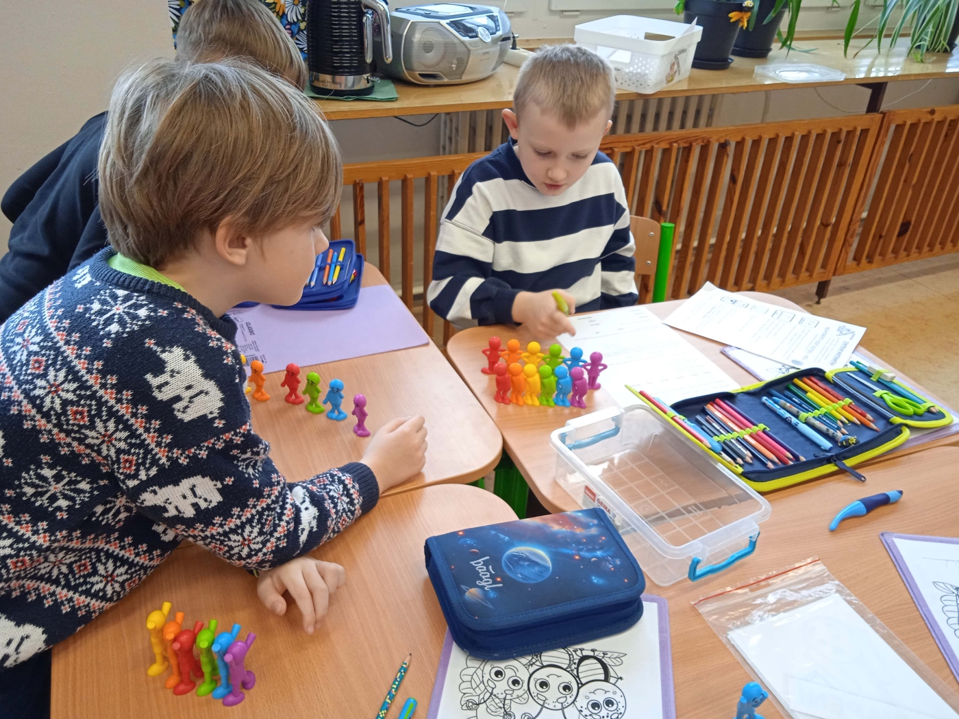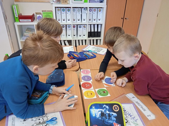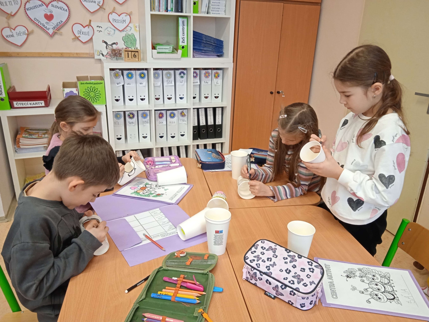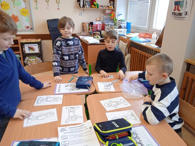 Velkou dávku zábavy přineslo centrum ateliér, kde si žáci nejprve vyzkoušeli skládání obličejů poslepu. Poté se pustili do kreativního tvoření tváří, které měly za úkol vyjádřit konkrétní emoce. A jistě se všichni těšili i do centra objevů. Zde žáci poznávali různé pocity skrze hry a vyrobili si vlastní kelímkové postavičky. S nimi následně vymysleli originální příběhy, které v rámci hodnotícího kruhu zahráli svým spolužákům.