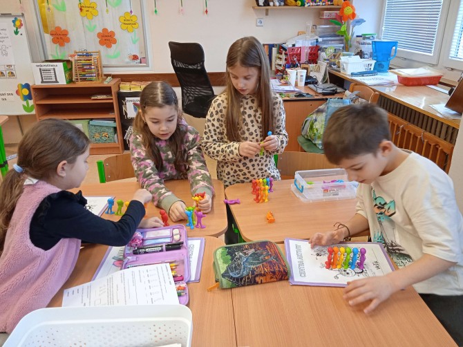 V centru matematika se žáci proměnili v analytiky, když třídili emoce do různých skupin a vyhledávali data v grafech nálad. Literární část v centru čtení a psaní patřila pohádce O pyšném míči Kulíkovi, nad jejímž příběhem děti společně diskutovaly.