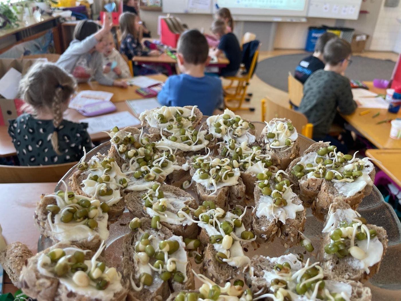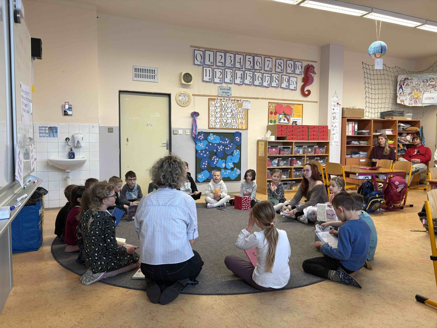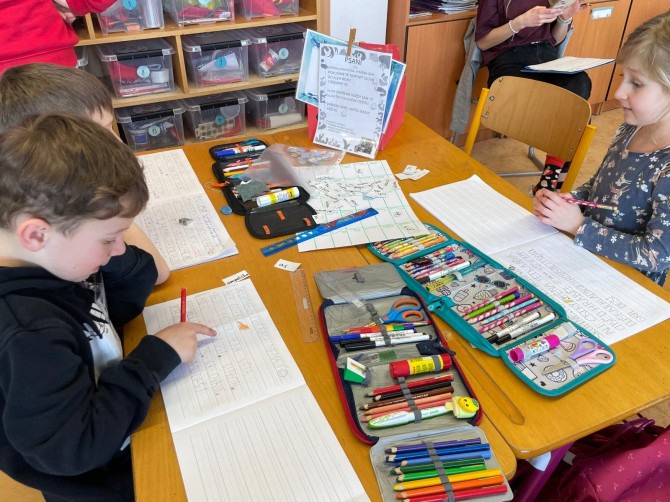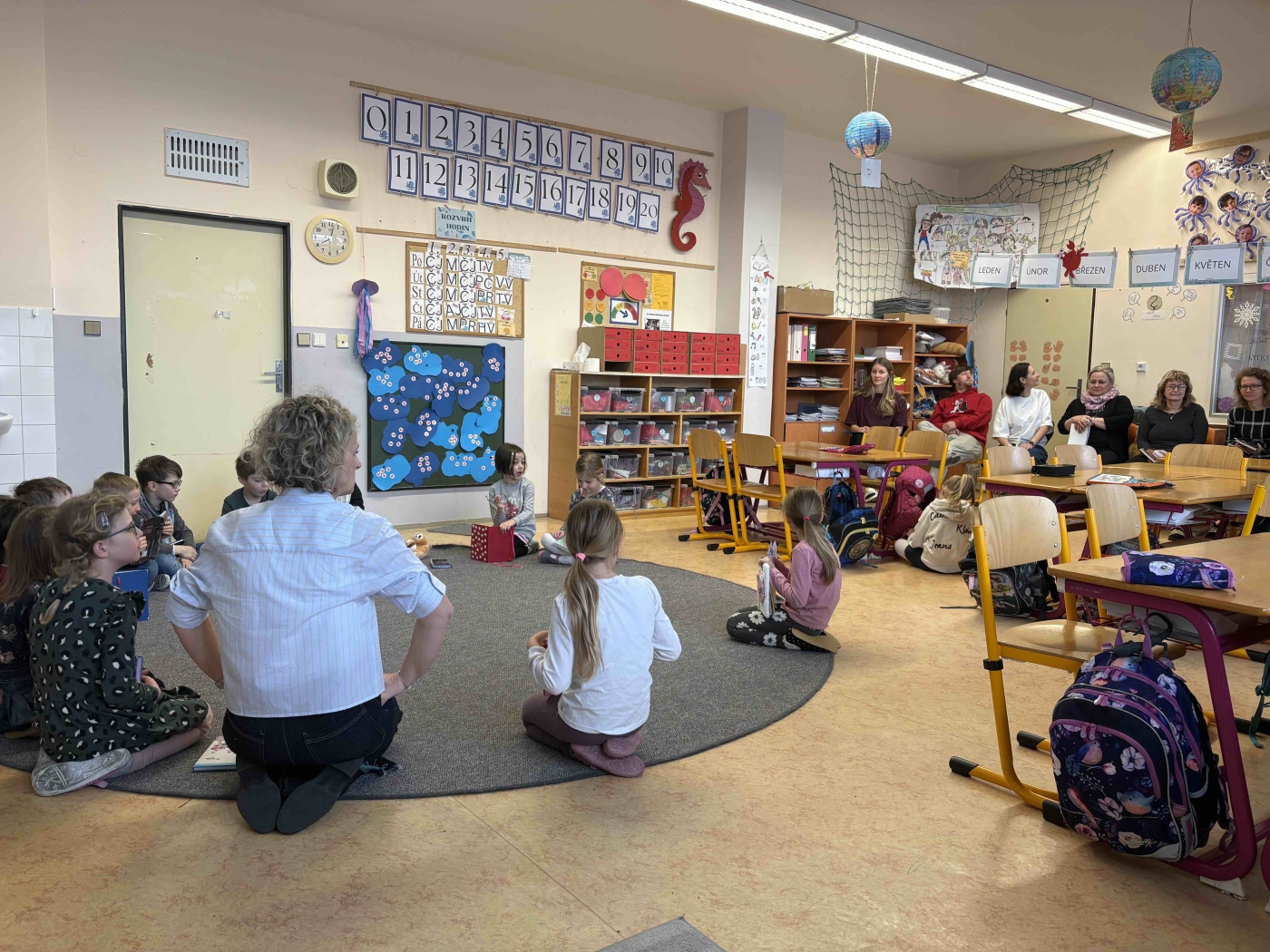 Ve středu 4. 3. jsme přivítali v 1. C velkou návštěvu. V rámci Dne ve třídě Začít Spolu jsme dostali příležitost ukázat, jak to u nás chodí. Přijeli se na nás podívat učitelé z bližších i vzdálenějších škol. Mohli tak vidět naše běžné ráno od ranního kruhu, přes trivium až po otevření nových center aktivit s překvapením. Všichni se na nás usmívali a my si vlastně užili fajn středu ????