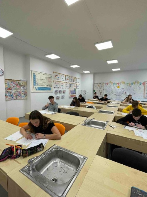Ve středu ráno se naši deváťáci sešli ve škole o něco dříve než obvykle. Čekal je cvičný přijímačkový test z matematiky. Cílem bylo, aby si žáci vyzkoušeli práci pod časovým tlakem, naučili se rozvrhnout si čas a zjistili, na co se ještě musí zaměřit v posledních týdnech příprav na přijímací zkoušky.