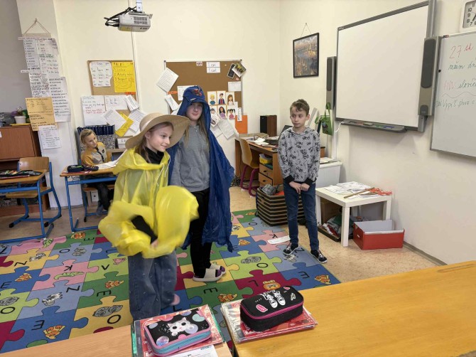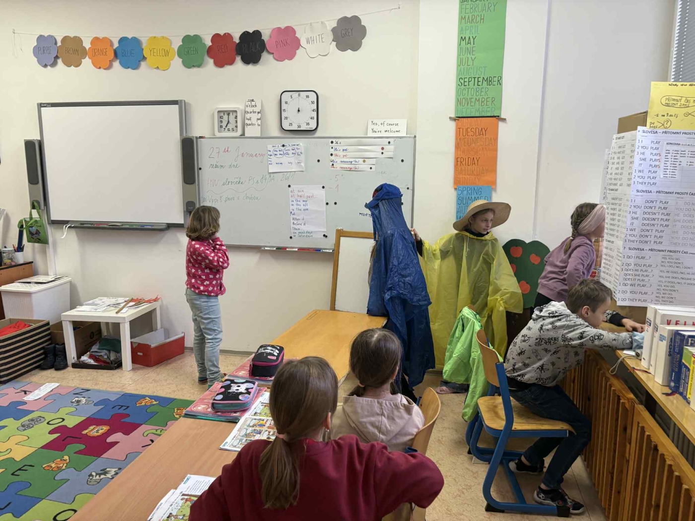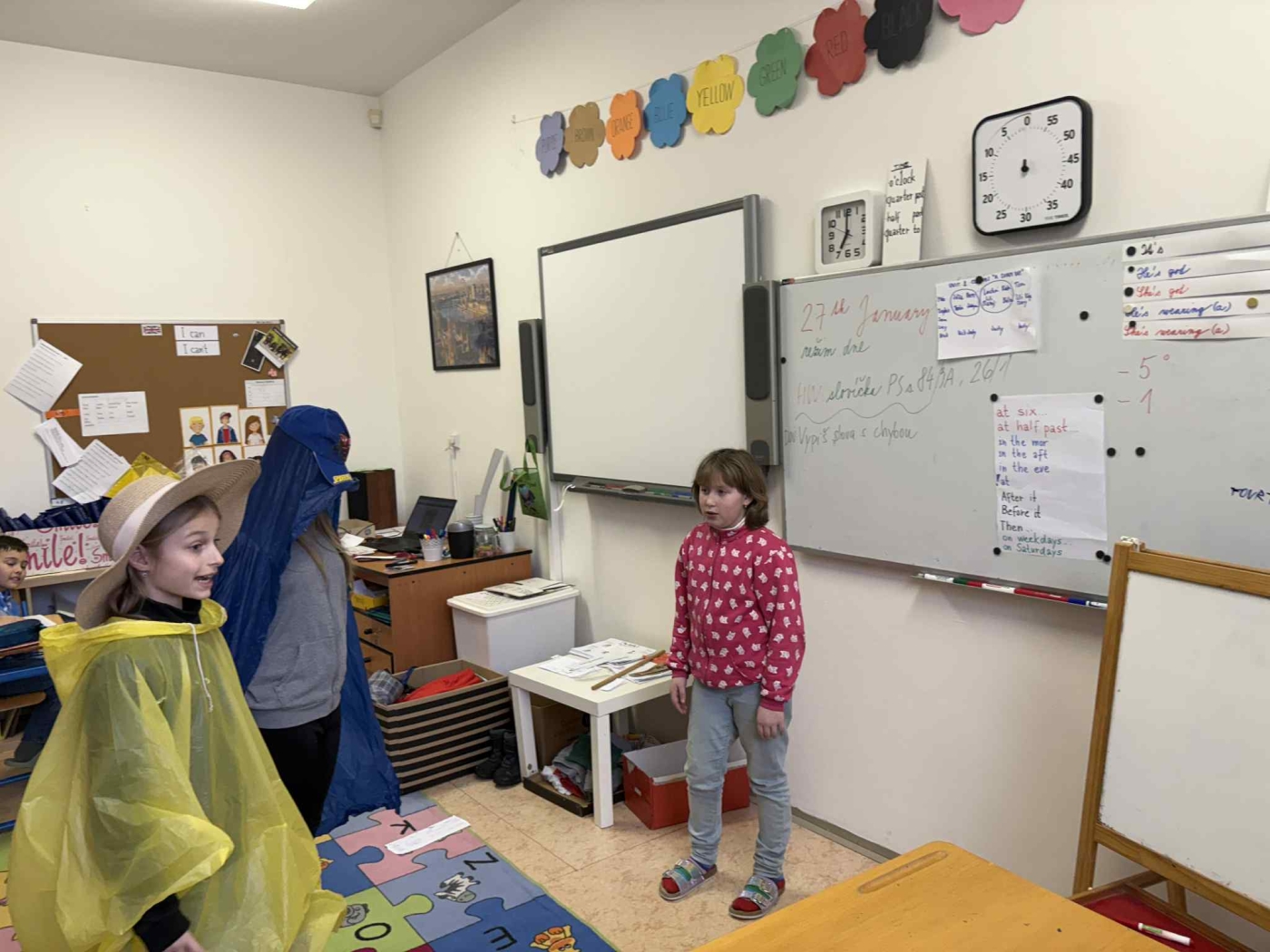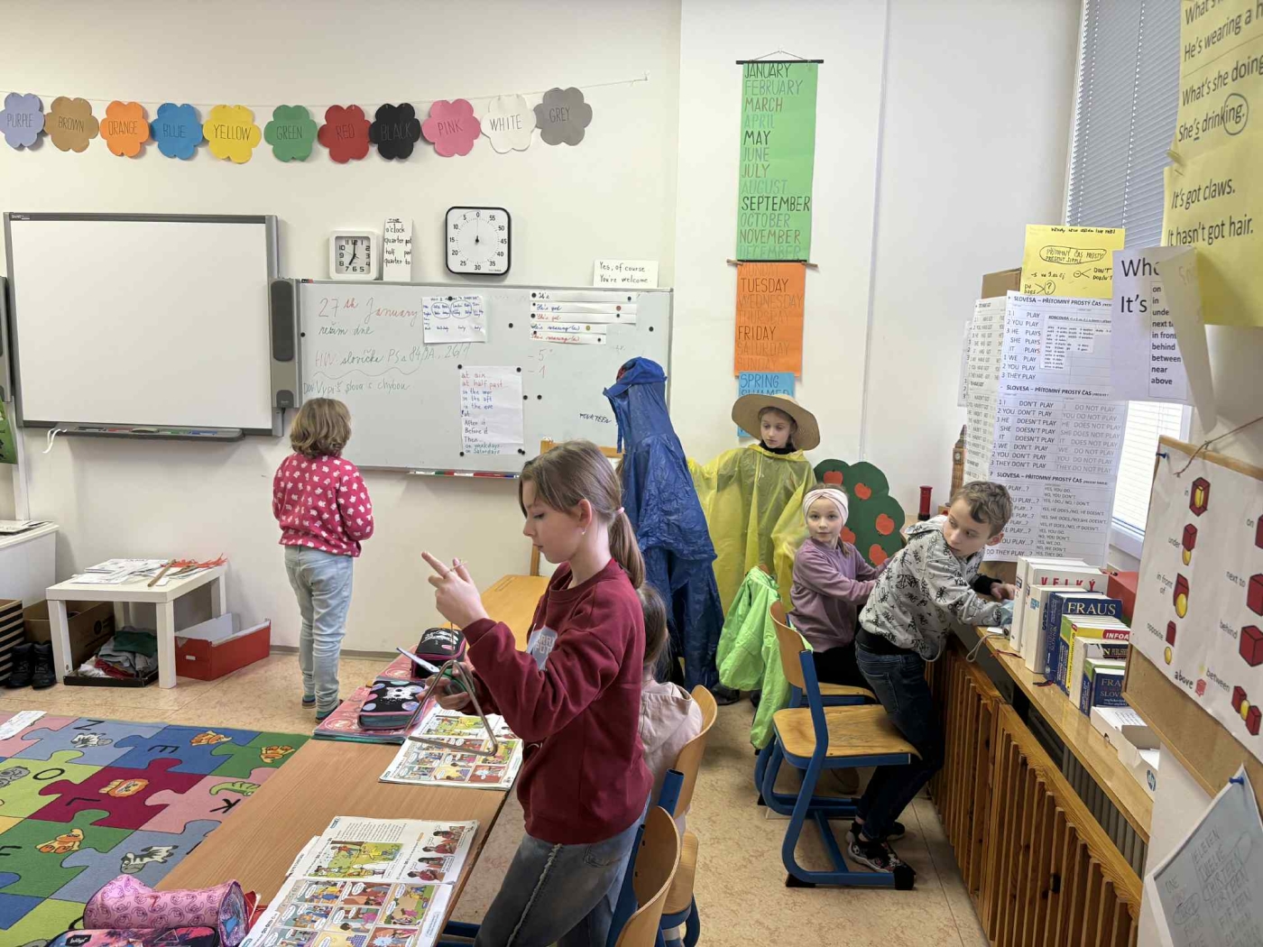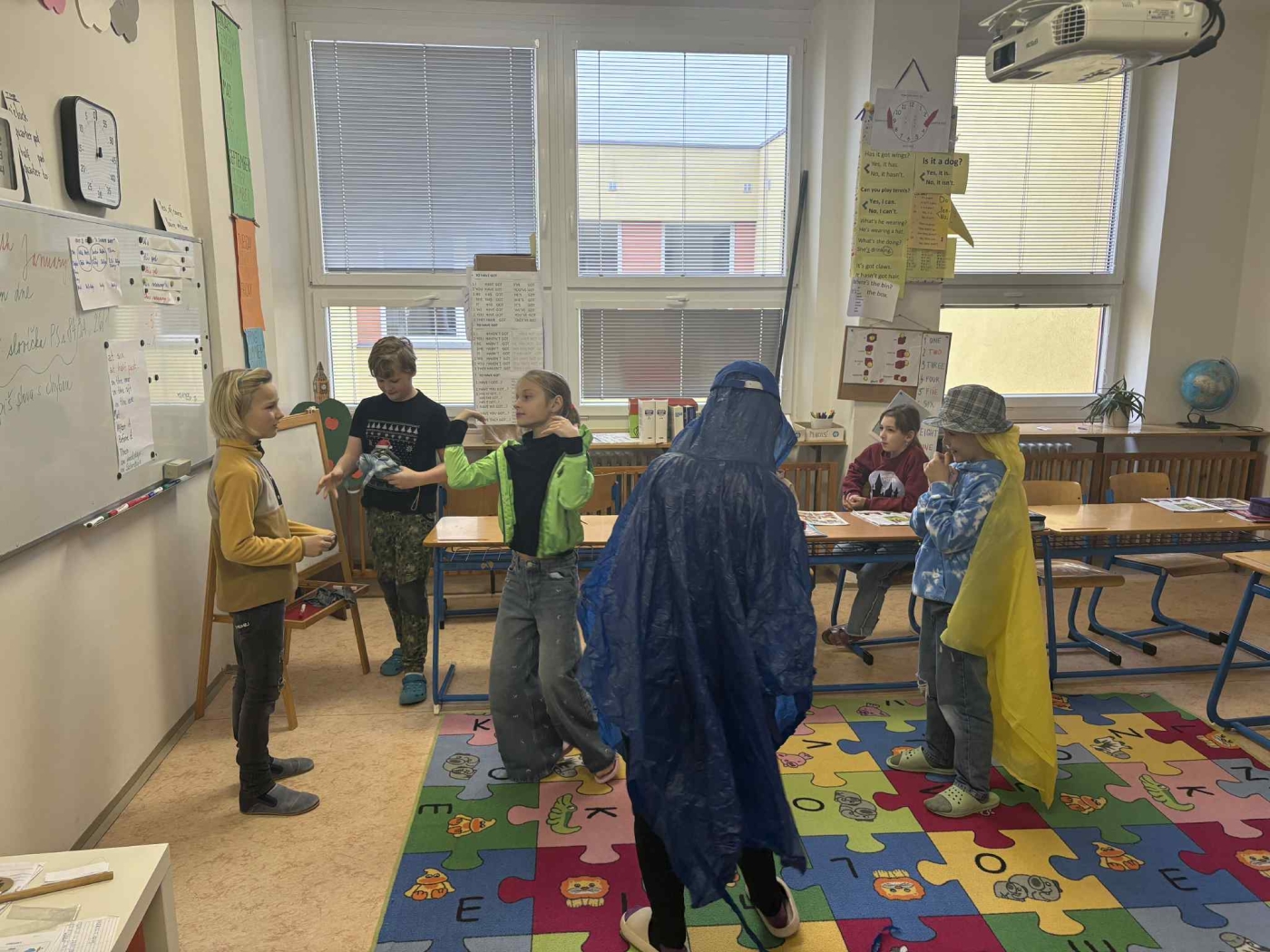 Žáci a žákyně 4. B si zpestřili výuku angličtiny v lekci UNIT 2 dramatizací příběhu z letního dne. Kromě legrace a zábavy, která je zřejmá z fotek i videí, jsme si upevnili slovní zásobu oblečení a frází s ním spojenými, před vlastní dramatizací jsme trénovali porozumění videu, správnou výslovnost a čtení jednotlivých rolí. Věříme, že tato forma výuky pozitivně ovlivní praktické využití jazyka v budoucím životě. Už se těšíme na další příběh!