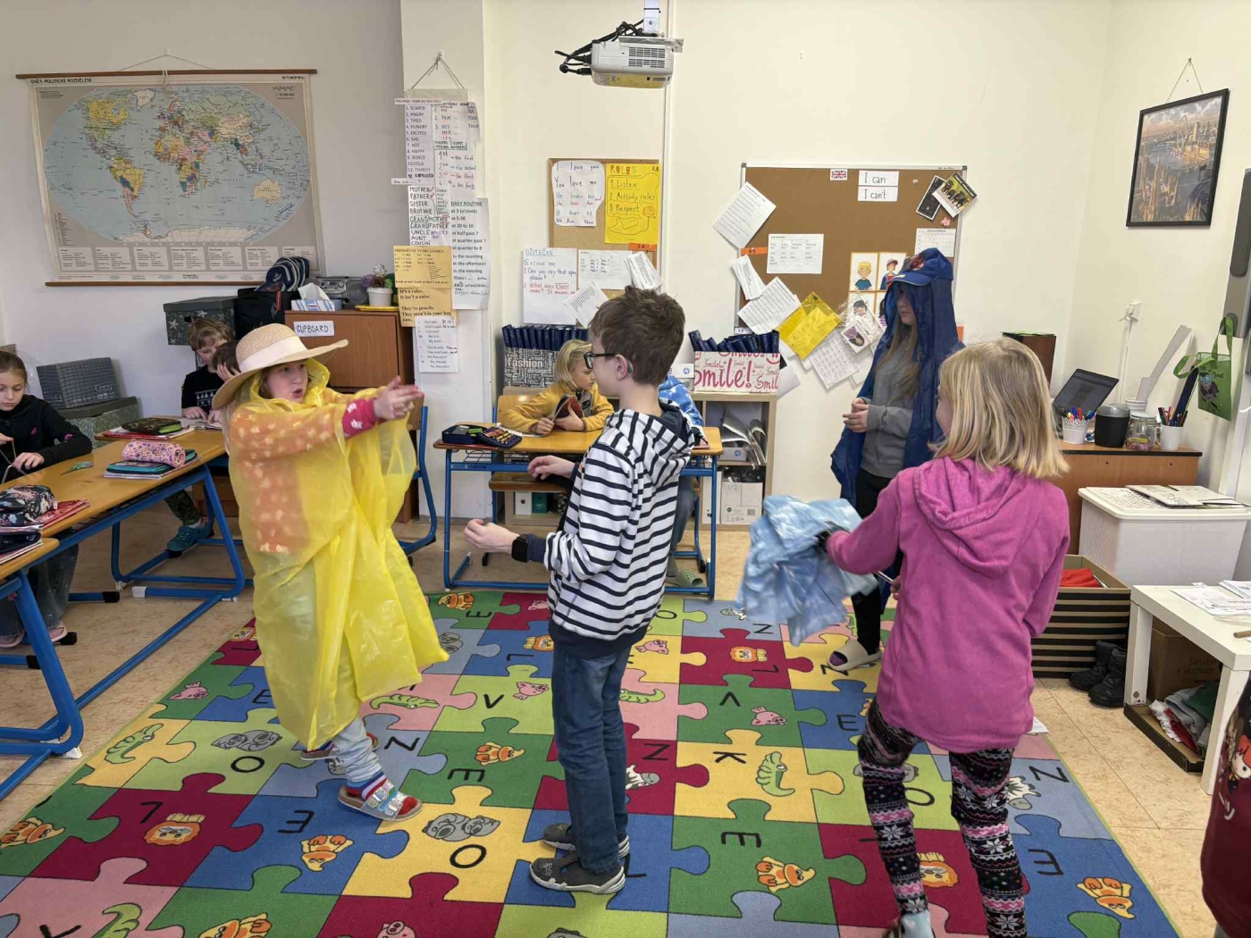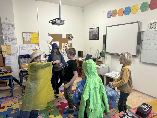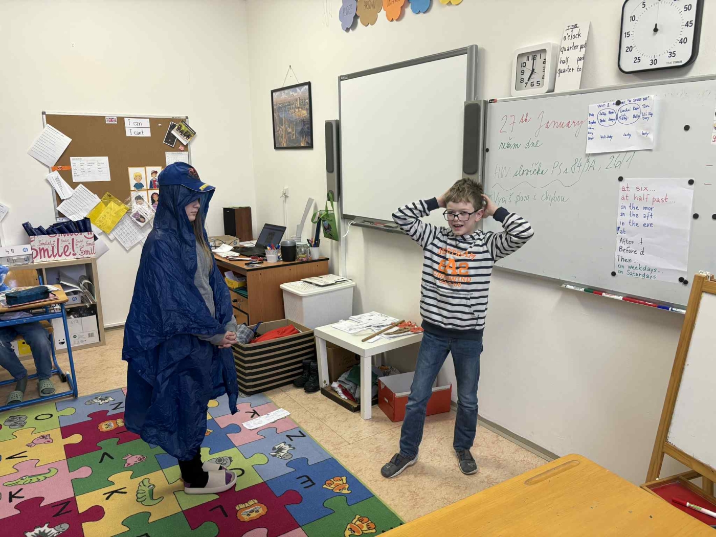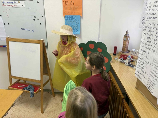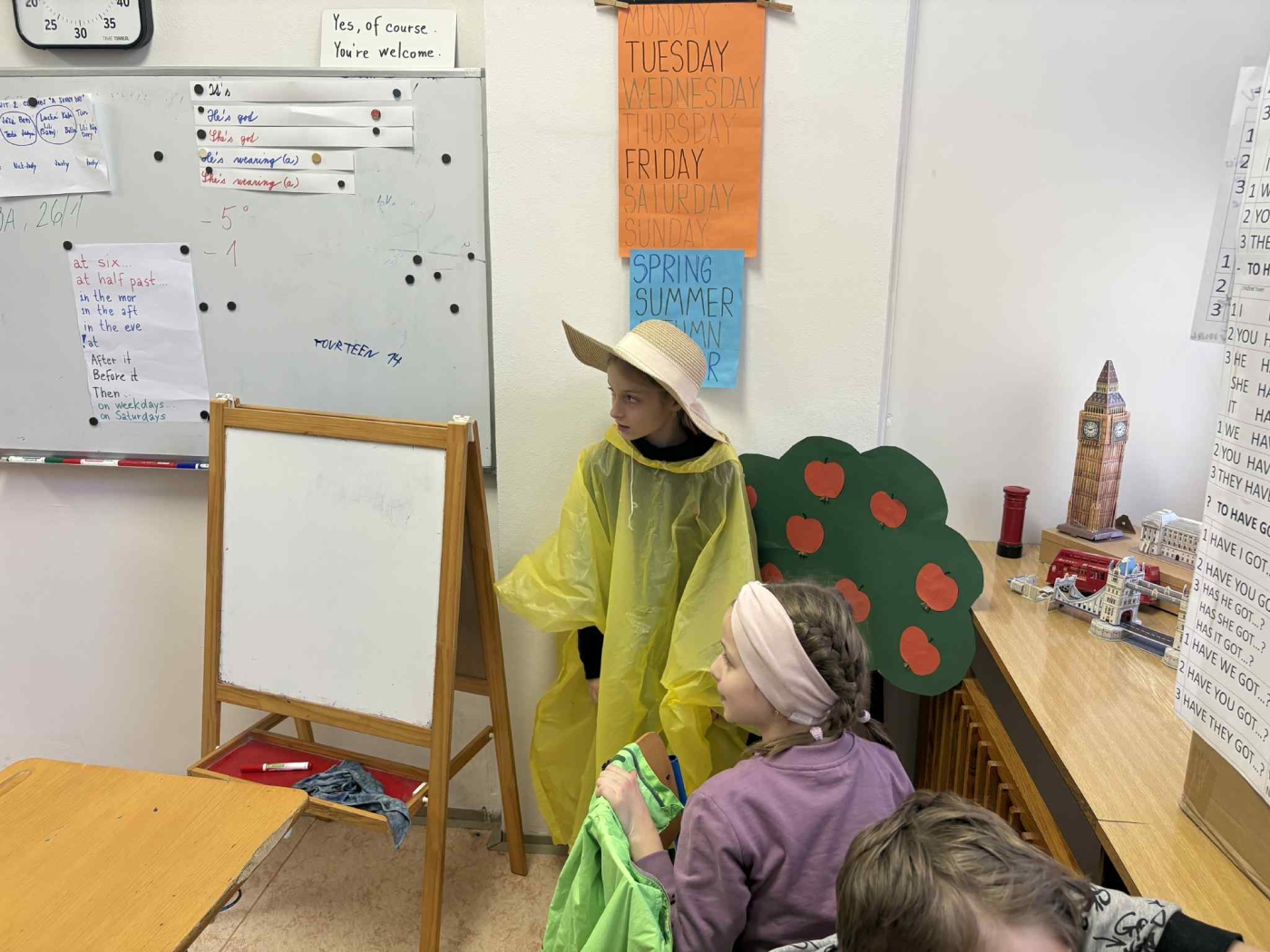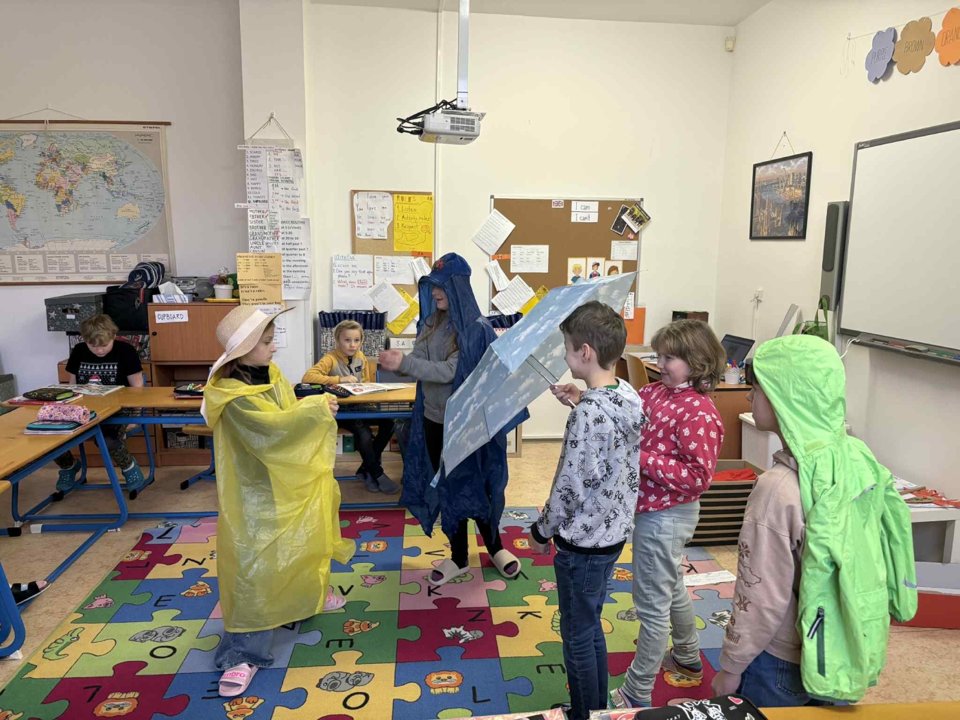 Žáci a žákyně 4. B si zpestřili výuku angličtiny v lekci UNIT 2 dramatizací příběhu z letního dne. Kromě legrace a zábavy, která je zřejmá z fotek i videí, jsme si upevnili slovní zásobu oblečení a frází s ním spojenými, před vlastní dramatizací jsme trénovali porozumění videu, správnou výslovnost a čtení jednotlivých rolí. Věříme, že tato forma výuky pozitivně ovlivní praktické využití jazyka v budoucím životě. Už se těšíme na další příběh!