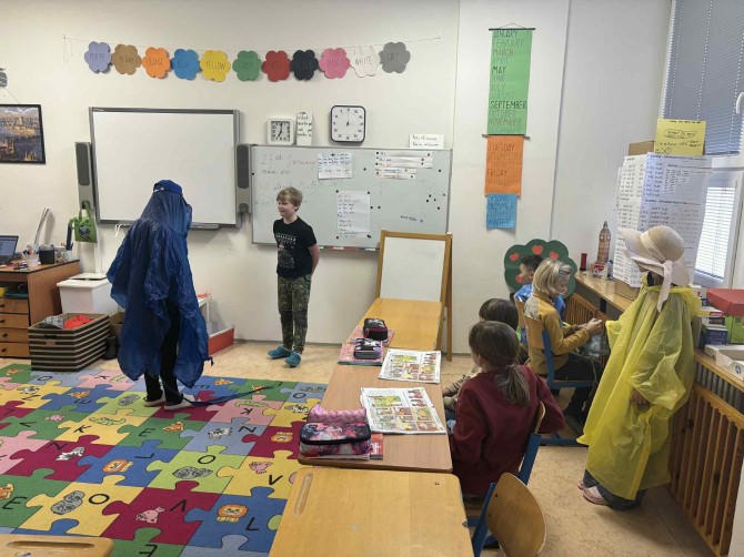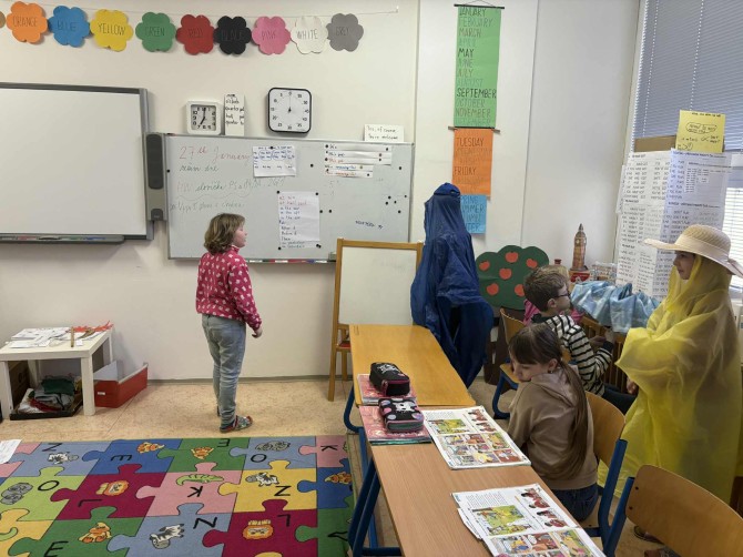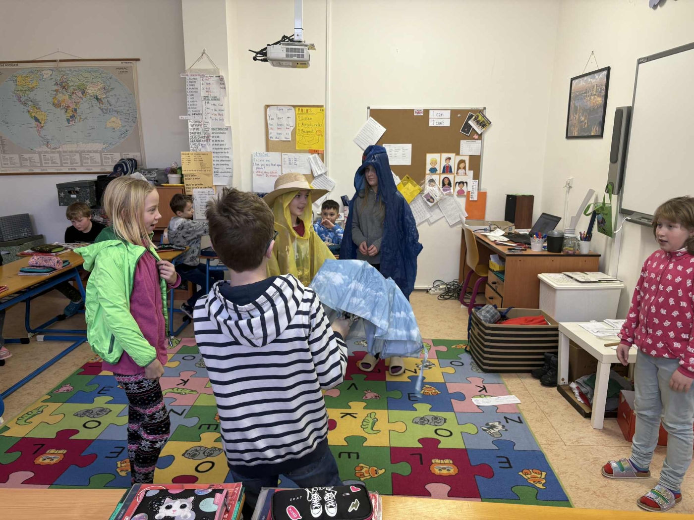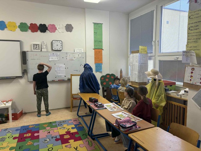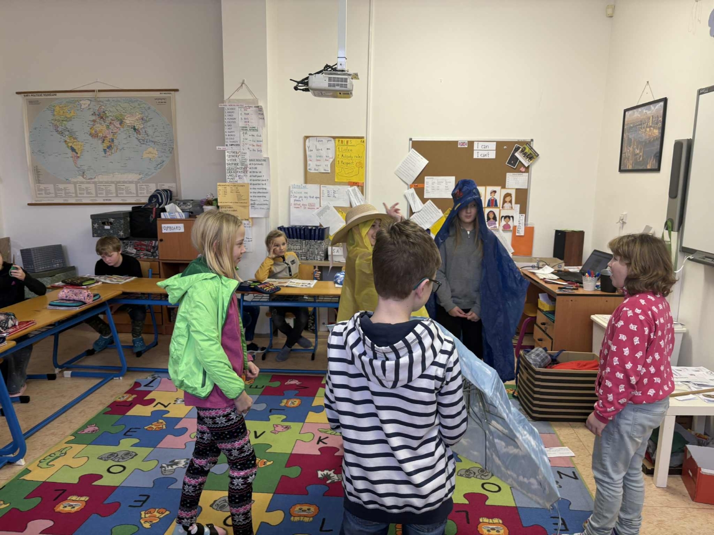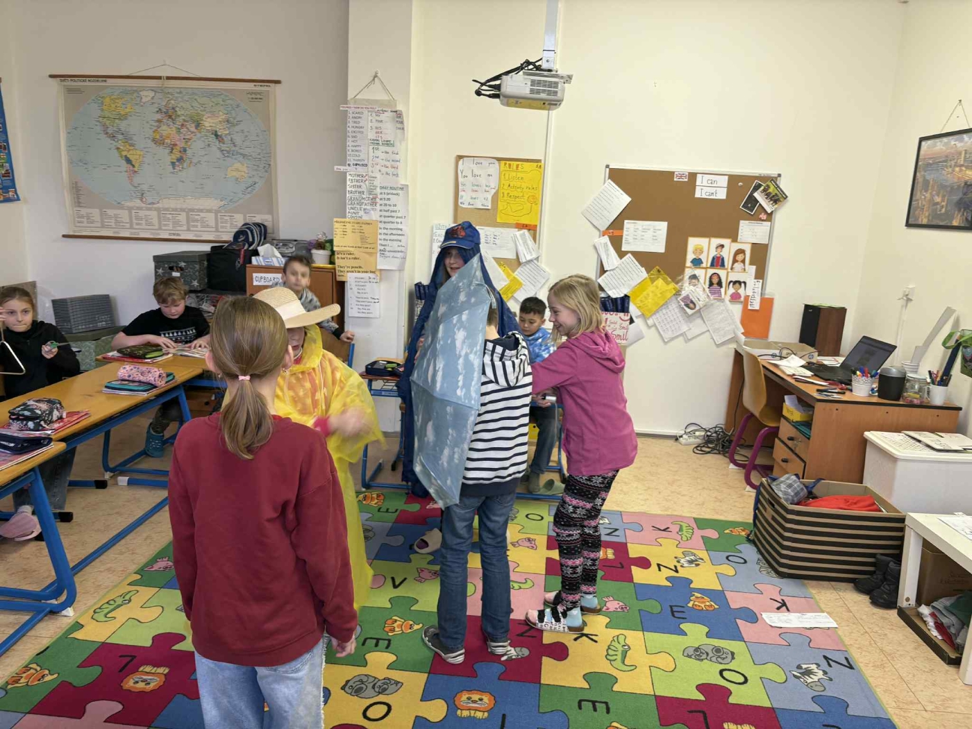 Žáci a žákyně 4. B si zpestřili výuku angličtiny v lekci UNIT 2 dramatizací příběhu z letního dne. Kromě legrace a zábavy, která je zřejmá z fotek i videí, jsme si upevnili slovní zásobu oblečení a frází s ním spojenými, před vlastní dramatizací jsme trénovali porozumění videu, správnou výslovnost a čtení jednotlivých rolí. Věříme, že tato forma výuky pozitivně ovlivní praktické využití jazyka v budoucím životě. Už se těšíme na další příběh!