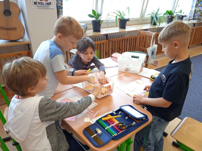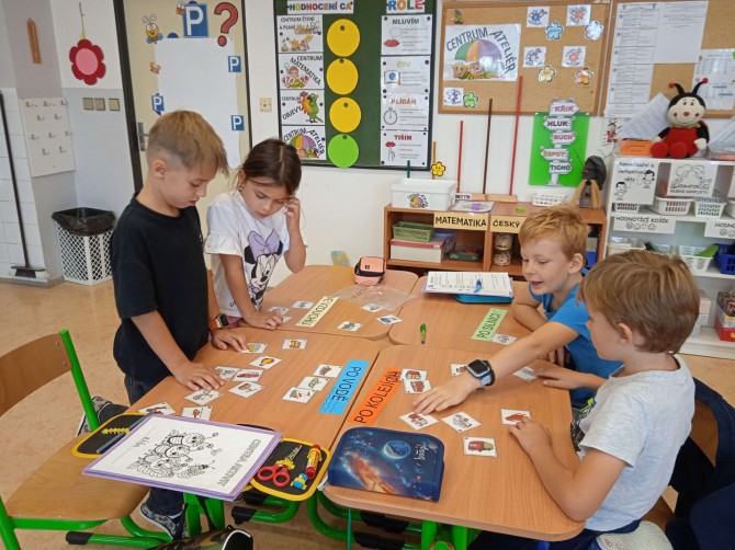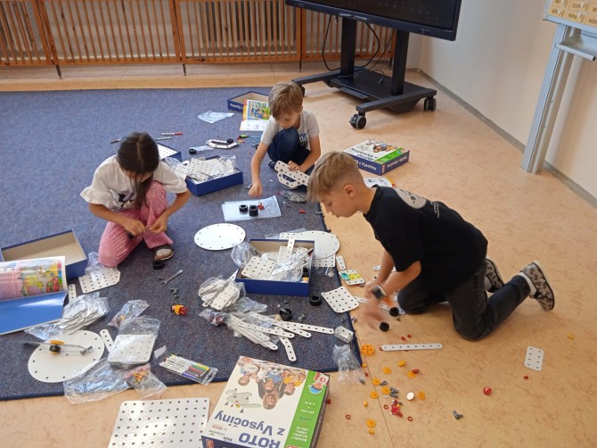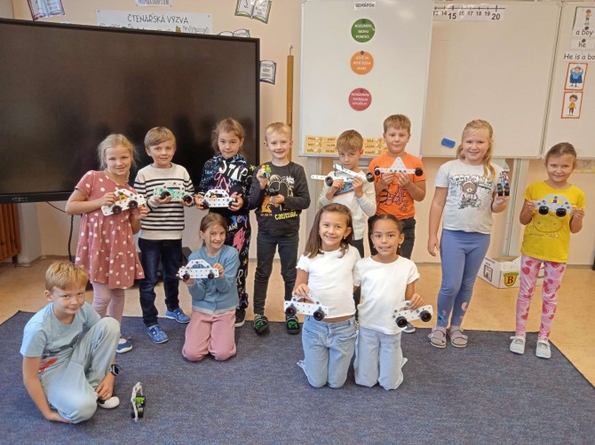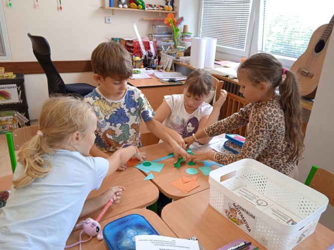 V Kvítečkově se roztočila kola poznání! Druháci naskočili do prvních center aktivit a vydali se na cestu světem dopravy. V matematickém centru skládali dopravní prostředky z geometrických tvarů – trojúhelníky se měnily ve střechy aut, obdélníky v karoserie, a počítání jelo na plný plyn. V Ateliéru se zrodily neuvěřitelné stroje ze stavebnice ROTA. Fantazie neměla brzdu. Centrum Objevy se proměnilo v dopravní laboratoř, kde děti zkoumaly značky, jejich význam a bezpečnostní pravidla. A v centru Čtení a psaní se dopravní prostředky seřadily podle abecedy, zatímco děti četly příběhy, které měly směr i cíl ve čtení s porozuměním. První jízda byla plná energie, tvořivosti a objevů – a už se těšíme, kam nás centra zavezou příště!