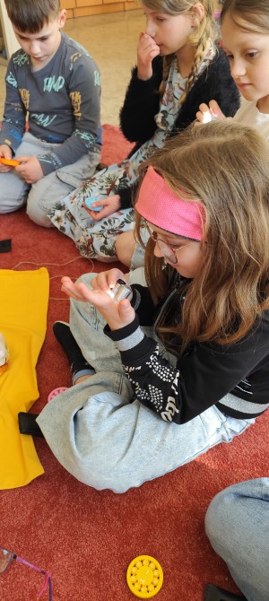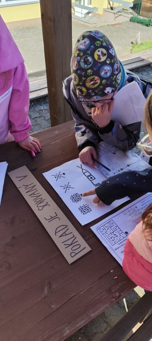 Ve 2. B jsme se v dubnu opravdu nenudili. Vše začalo společnou oslavou Velikonoc v naší třídě a první jarní venkovní bojovkou. Po úspěšném splnění a rozluštění šifry děti zjistily, kde se skrývá poklad –spinnery na násobilku a mini mikroskopy do centra aktivit.