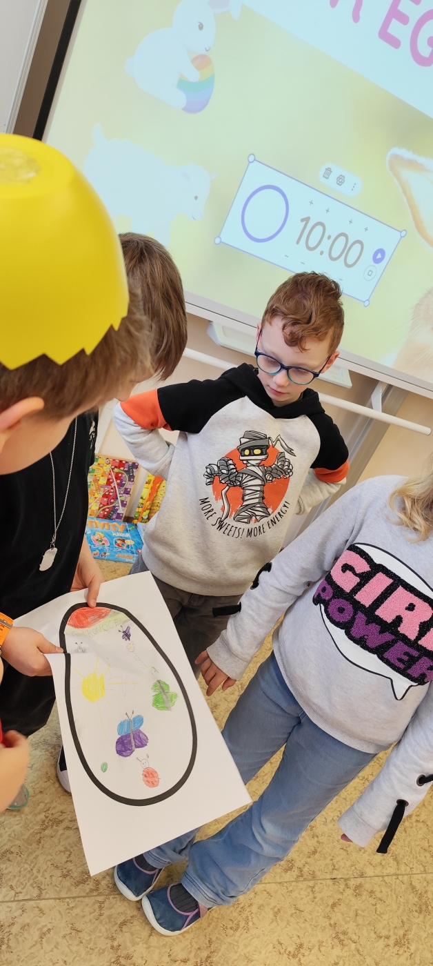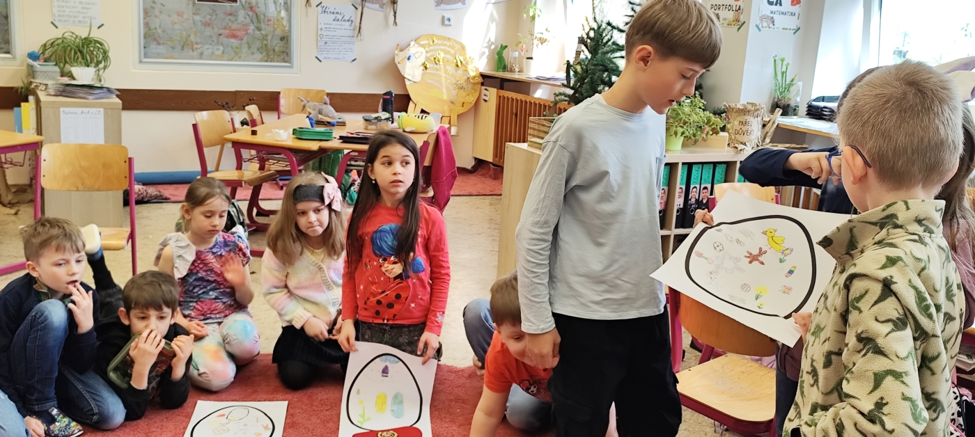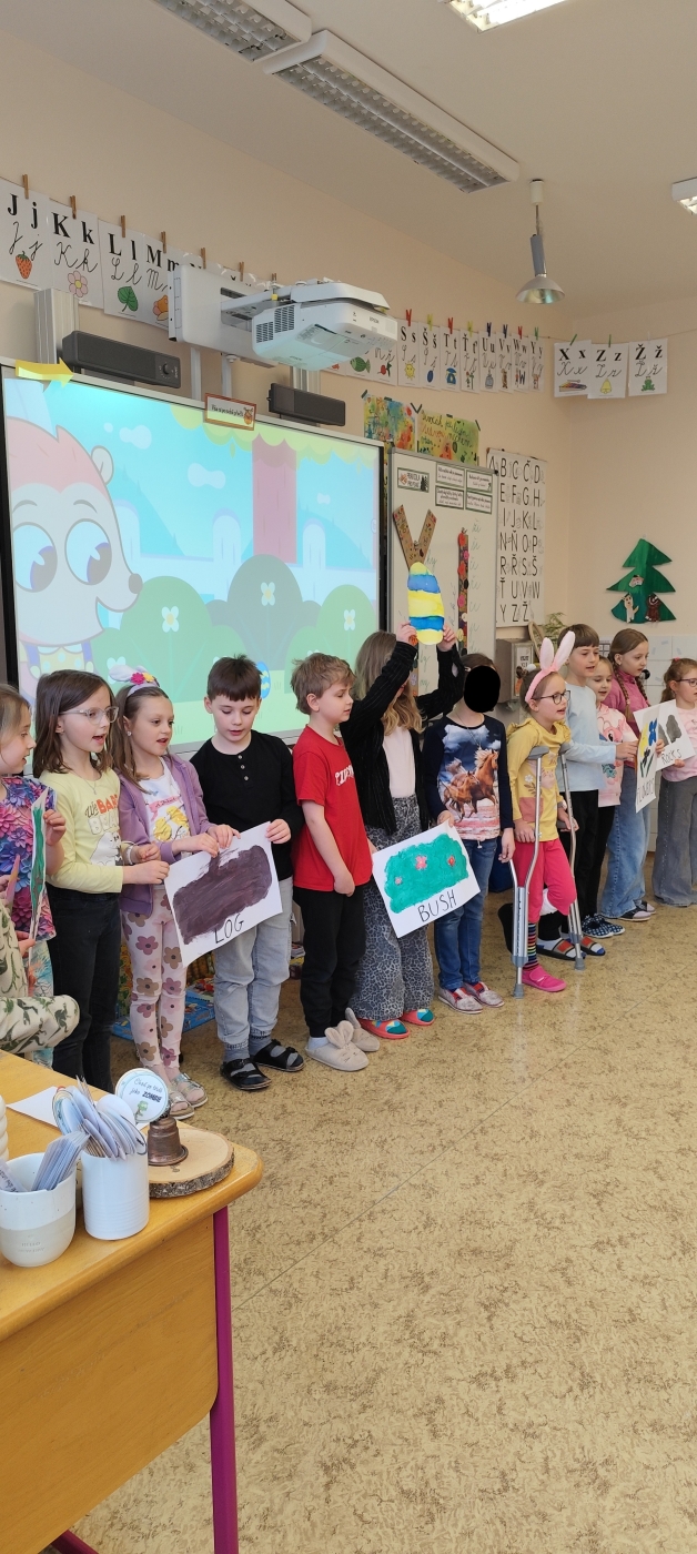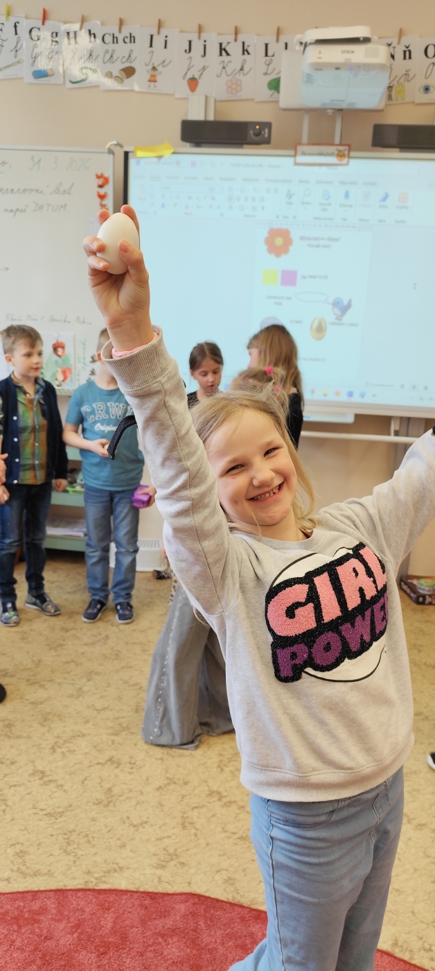 Třídy 2. A a 2. B se dnes sešly, aby společně oslavily Velikonoce. Tentokrát ale v anglickém jazyce. Každá třída předvedla svoji natrénovanou píseň a pak už se vylosovaly skupiny a hrály se "Board games". Znáte "Egg tapping"? I známou anglickou hru "Moving an egg with a skewer" jsme si trošku poupravili a užili si dopoledne plné her a soutěží. Závěrečná výzva byla popsat velikonoční vejce, které každá skupina vytvořila. Odcházíme s vajíčkem v břiše, dobrou náladou i náloží anglických slovíček v hlavičkách.
