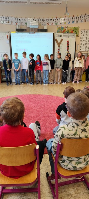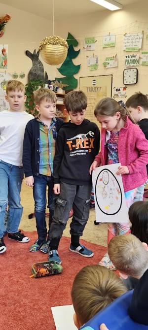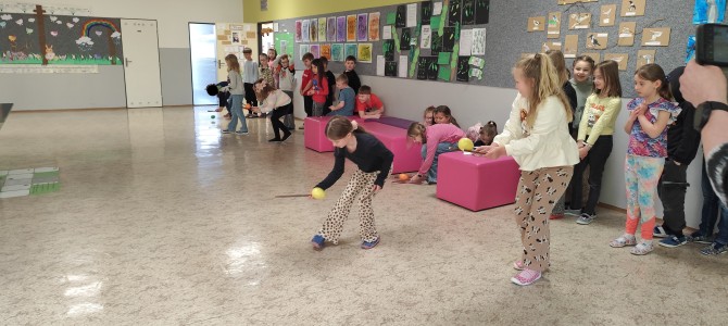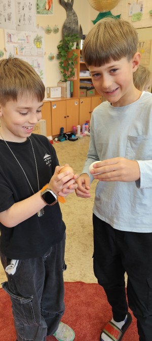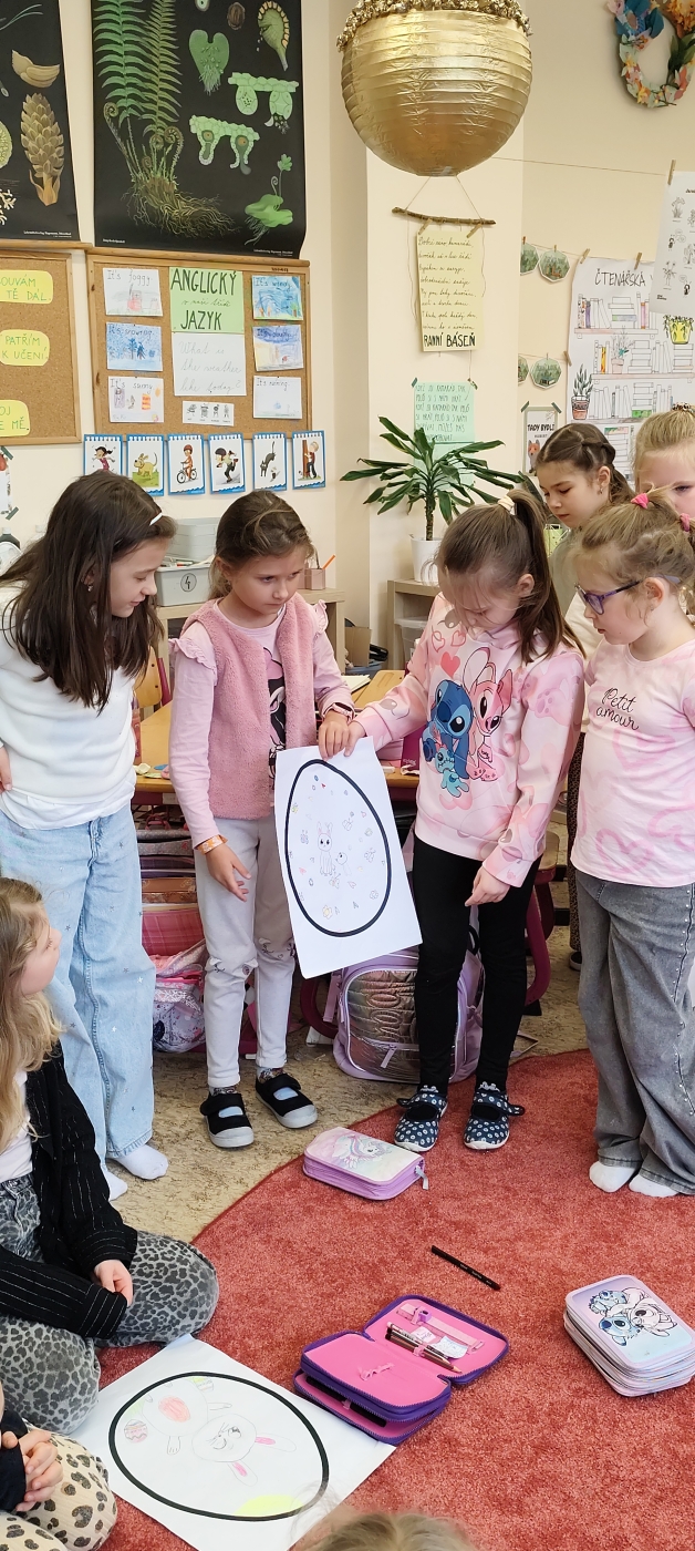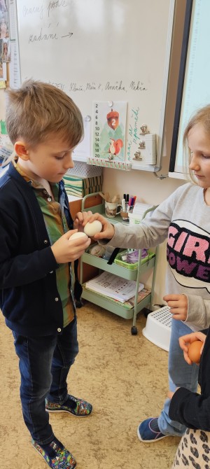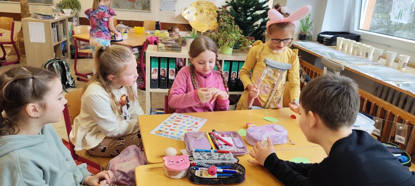 Třídy 2. A a 2. B se dnes sešly, aby společně oslavily Velikonoce. Tentokrát ale v anglickém jazyce. Každá třída předvedla svoji natrénovanou píseň a pak už se vylosovaly skupiny a hrály se "Board games". Znáte "Egg tapping"? I známou anglickou hru "Moving an egg with a skewer" jsme si trošku poupravili a užili si dopoledne plné her a soutěží. Závěrečná výzva byla popsat velikonoční vejce, které každá skupina vytvořila. Odcházíme s vajíčkem v břiše, dobrou náladou i náloží anglických slovíček v hlavičkách.