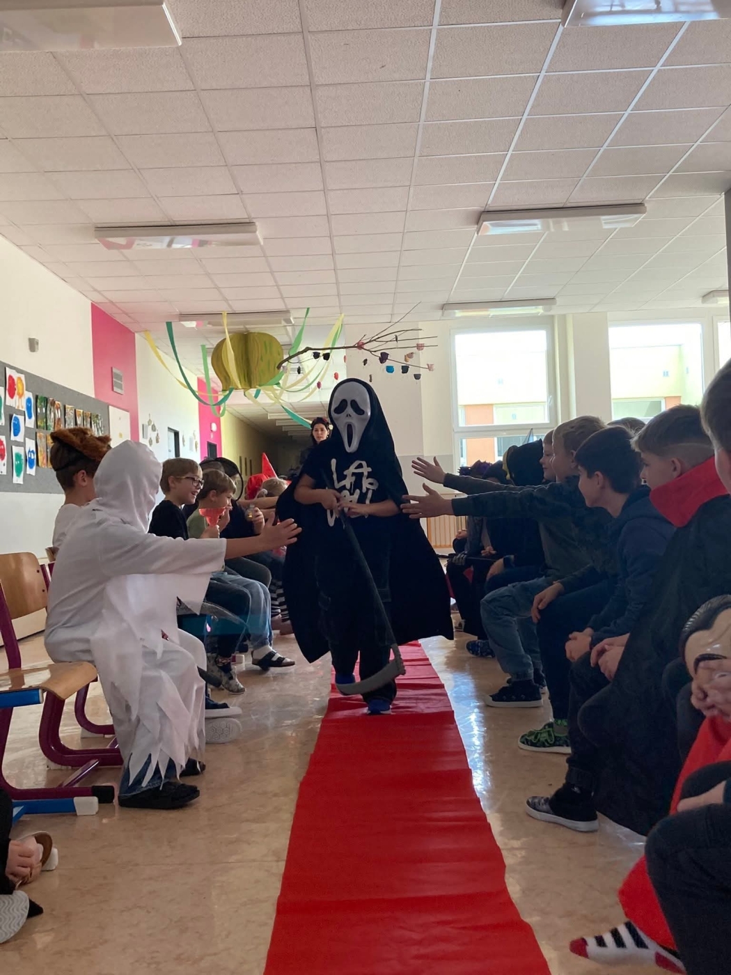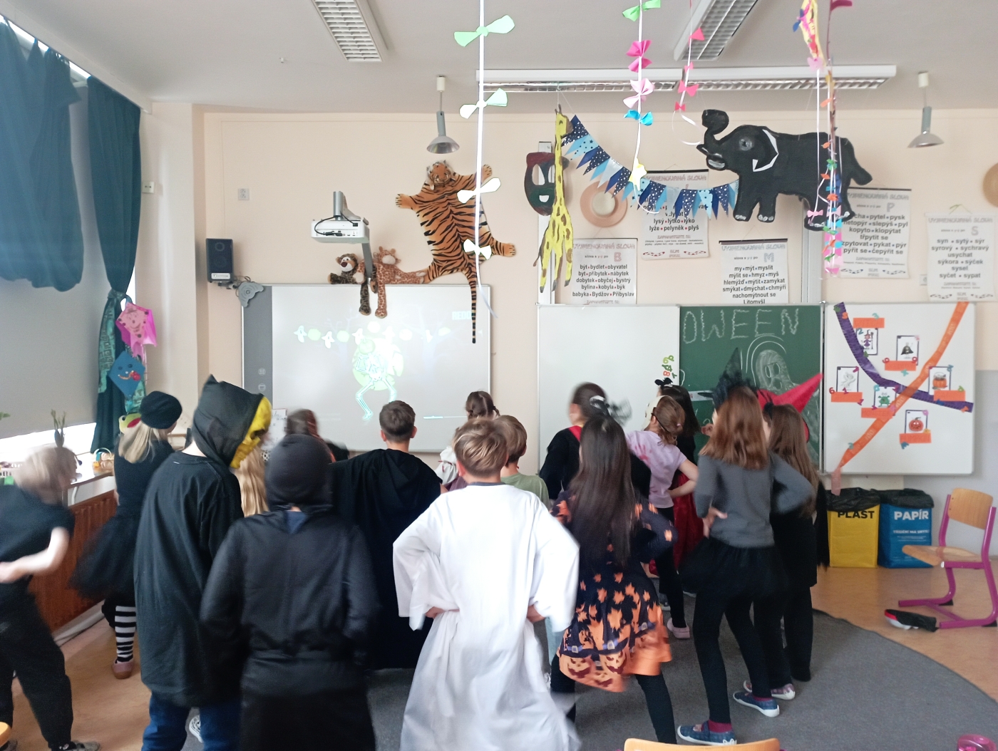 Na závěr jsme to pořádně roztočili! Halloweenový tanec roztočil obě třídy a vykouzlil úsměvy na tvářích všech zúčastněných.