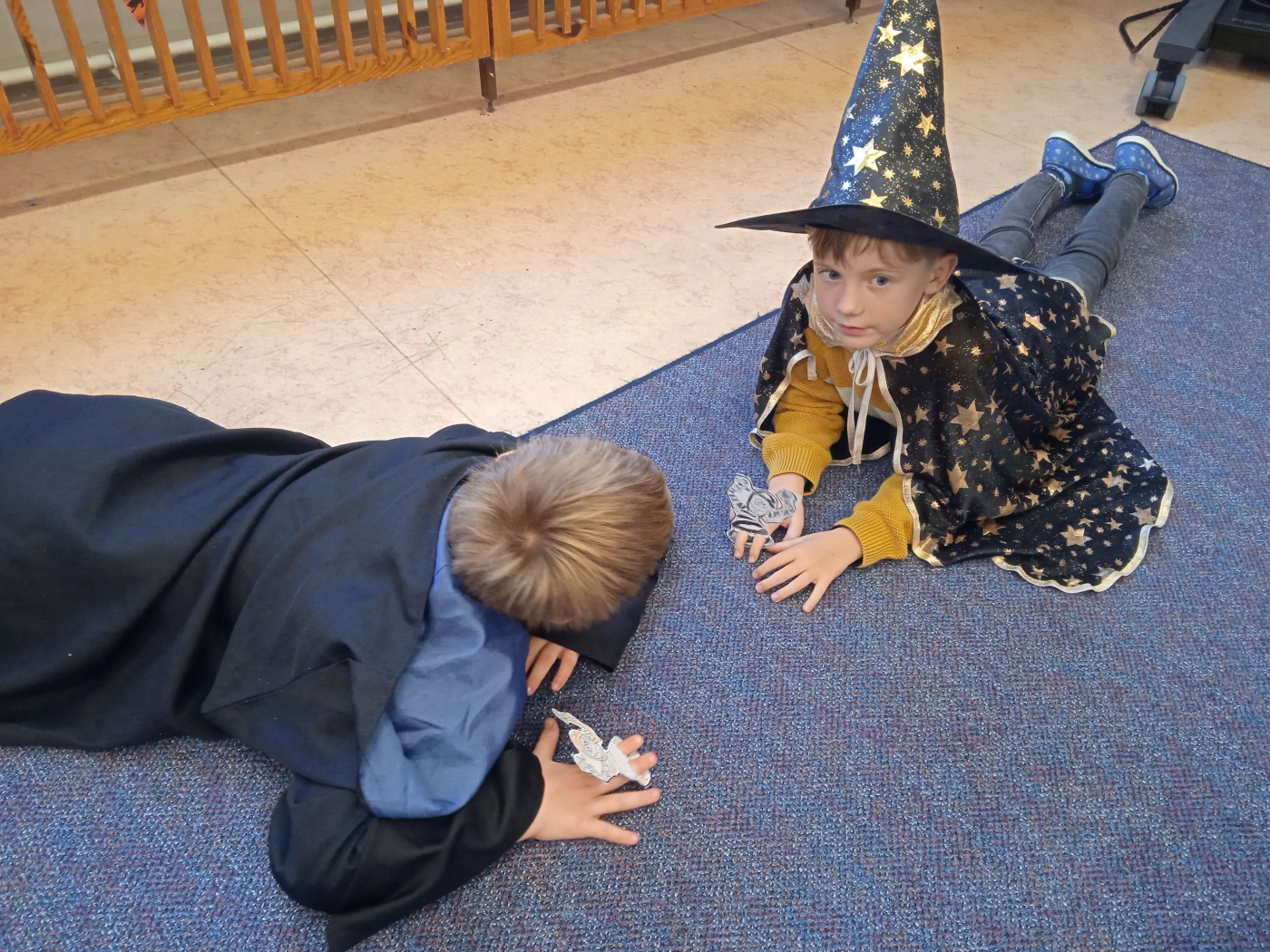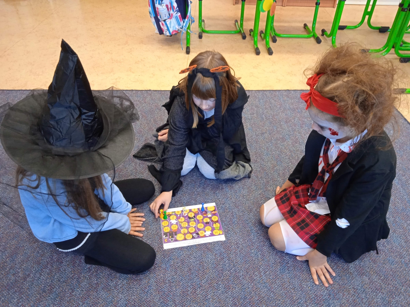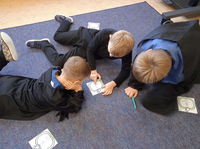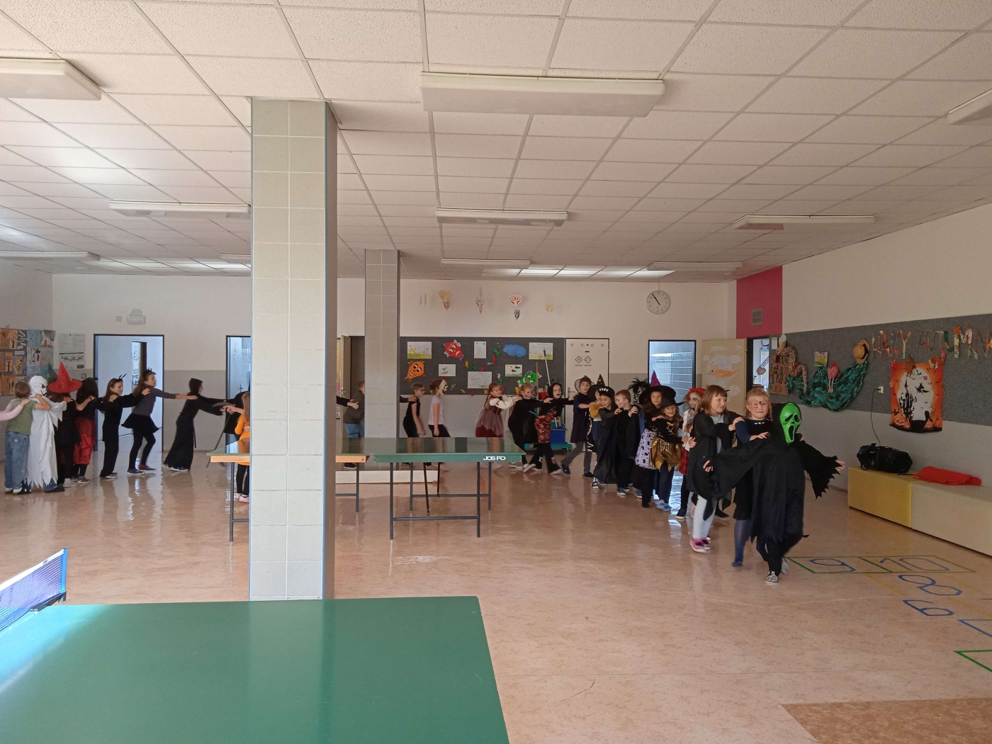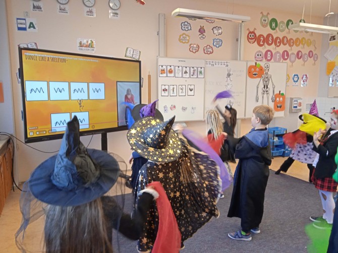 Ve třídě 2. A se Halloween proměnil v nezapomenutelný den plný tvořivosti, pohybu a spolupráce. Děti se s nadšením pustily do anglických halloweenských slovíček, skládaly věty a sehrály rozhovor mezi strašidelnými postavičkami. V češtině si vymýšlely vlastní halloweenský příběh, který si pak společně zahrály, a druhy vět si zopakovaly formou zábavné běhačky. Nechyběl ani pohyb – děti si užily halloweenský „moving" se žonglovacími šátky, který roztančil celou třídu. Vrcholem dne byla písnička „Jdeme ulicí", kterou zazpívaly s takovým nadšením, že se k nim spontánně přidaly i ostatní třídy v okolí. O milé překvapení se postaraly žákyně z páté třídy, které přišly s vlastním vystoupením a potěšily všechny přítomné. Den zakončila halloweenská hostina plná dobrot – velké poděkování patří všem maminkám za jejich skvělou přípravu. Děti si odnesly nejen nové znalosti, ale především spoustu zážitků, úsměvů a radosti ze společně prožitého dne.