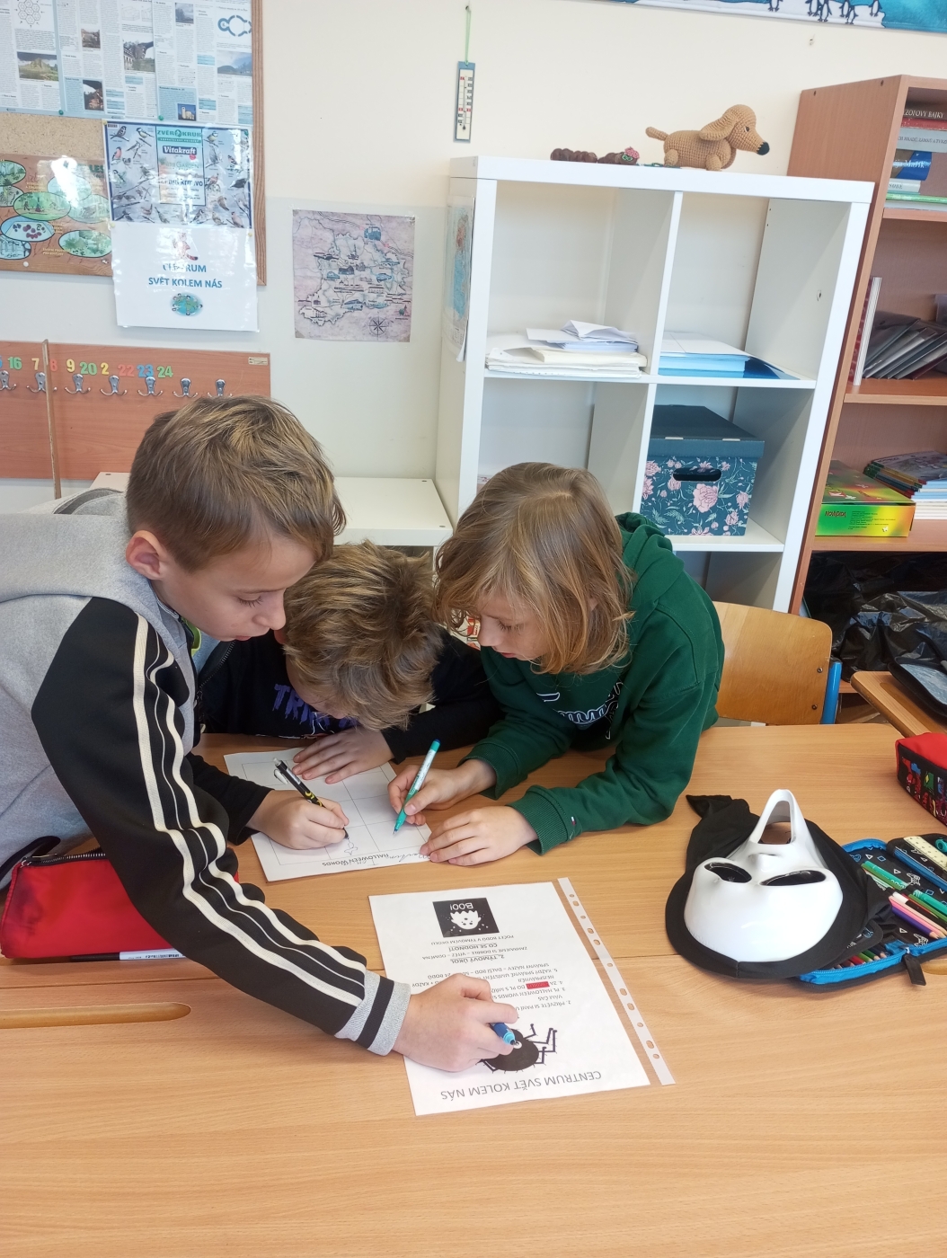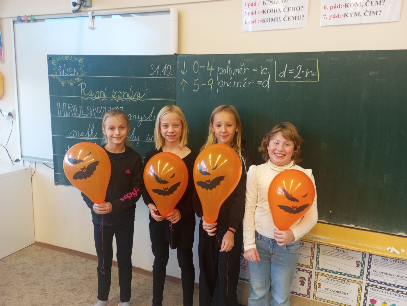 Ve 4. B jsme si užili skvělý Halloween plný her a učení. V rámci center aktivit jsme luštili tajemné úkoly, psali halloweenské příběhy a procvičovali angličtinu s duchy a dýněmi. Bavila nás také matematika a nafukování balónků. Všichni přišli v úžasných kostýmech.