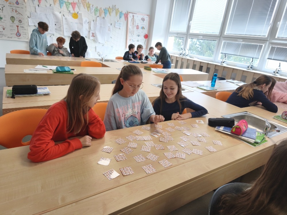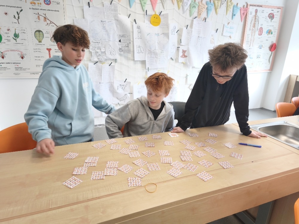 Šestáci si v hodinách přírodopisu zopakovali téma hub netradiční a zábavnou formou. Opakování začalo hrou pexeso, ve kterém žáci poznávali zástupce různých druhů hub a procvičovali si jejich názvy.