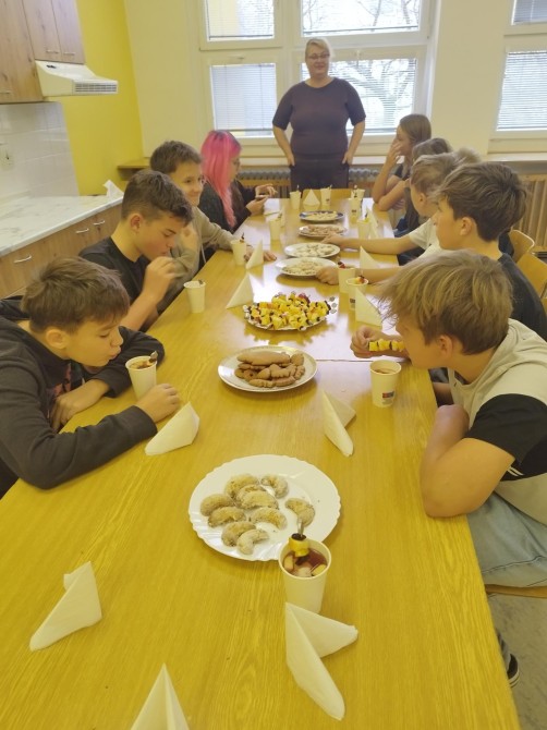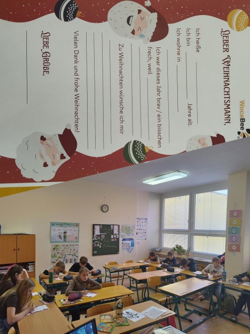 Vánoční projekt 7. A/B, na kterém si nejprve žáci osvojili slovní zásobu s vánoční tématikou. Zahráli si vánoční domino, trimino a karty. Další aktivitou byl barevný diktát, při kterém si vybarvili obrázek Adolfa Borna. Zazpívali si tradiční klasickou koledu O Tannenbaum a moderní rap Rentier song. Ve školní kuchyňce si napekli cukroví a pochutnali si i na vánočním punči. 7.A stihla ještě napsat dopis Ježíškovi a vyrobit vánoční přání. Frohe Weihnachten an alle!