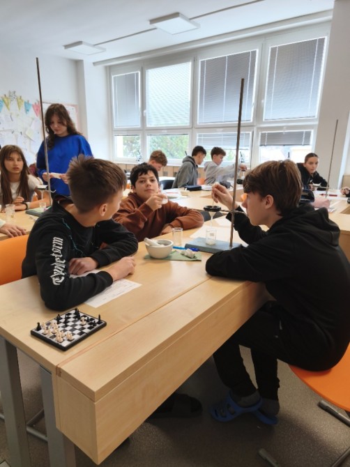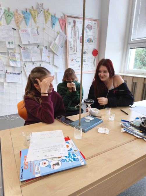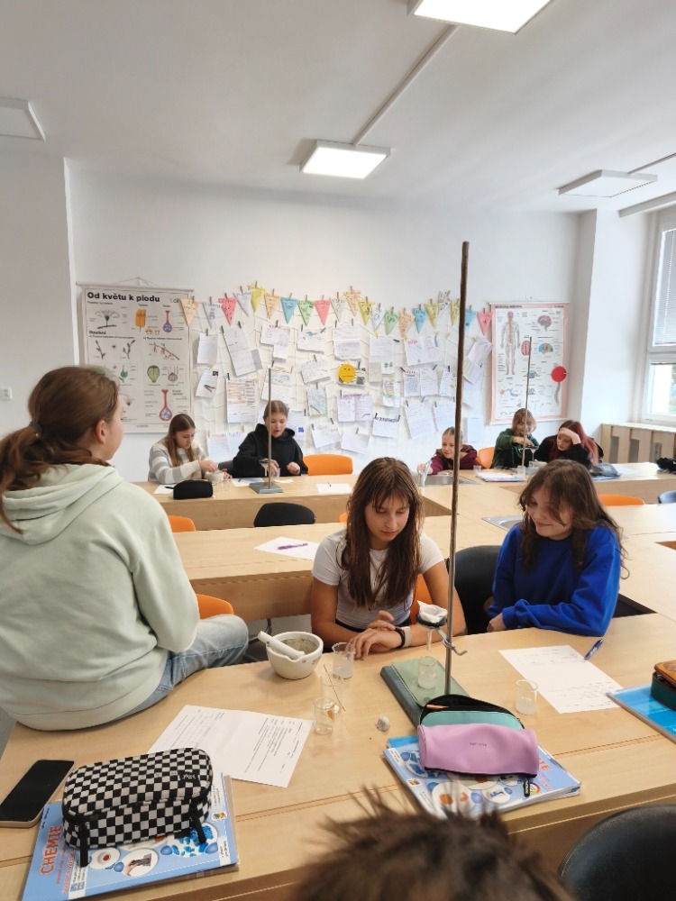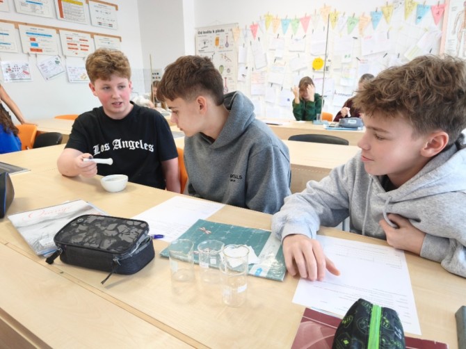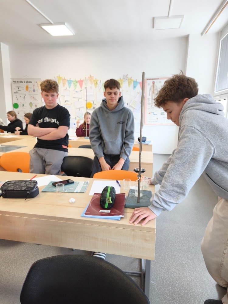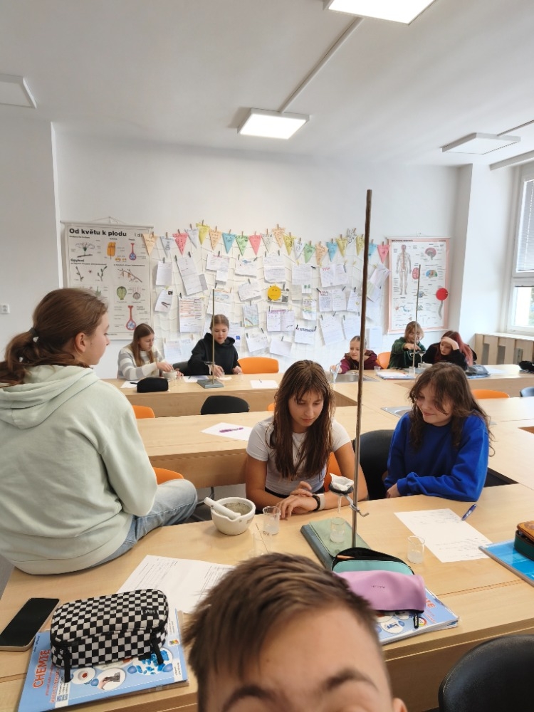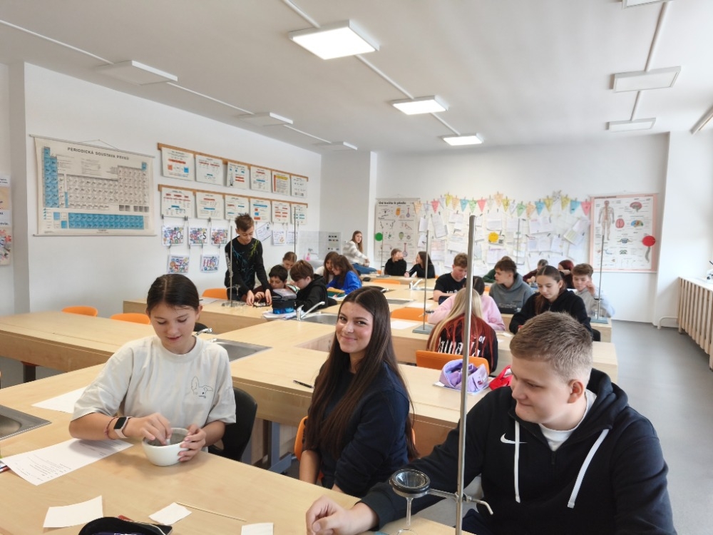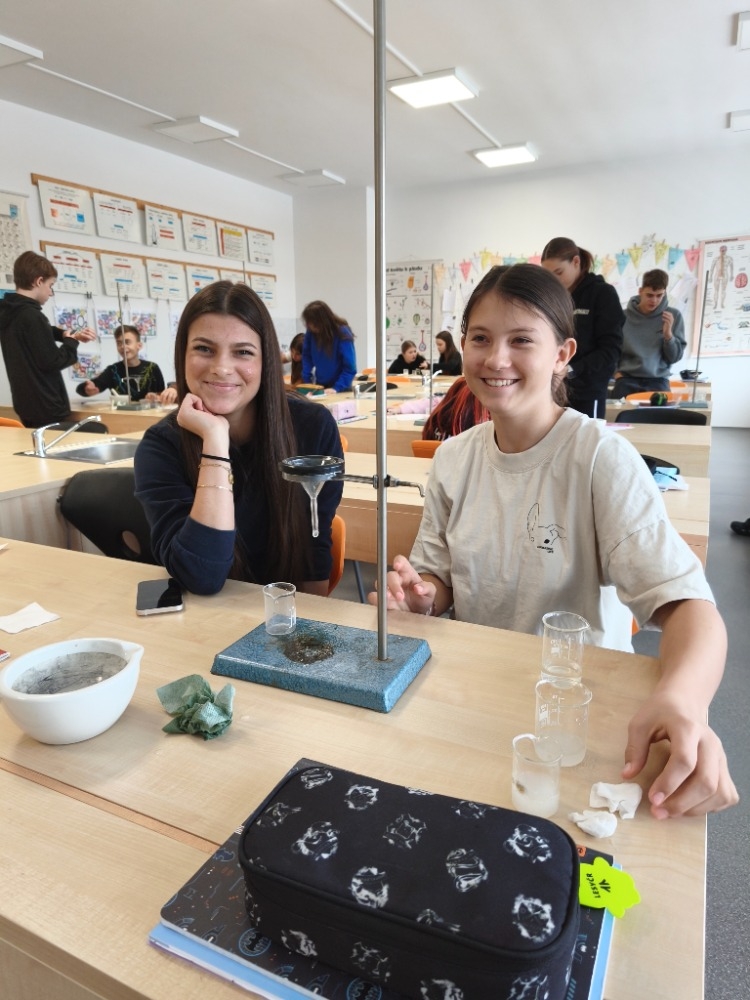 V hodině chemie si žáci 8. ročníku prakticky vyzkoušeli filtraci a seznámili se s různými filtračními technikami. Cílem bylo zjistit, jak použitý filtrační materiál ovlivňuje rychlost a kvalitu filtrace.