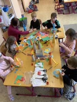 V sobotu 21. března 2026 pořádala školní družina pro děti jarní tvoření. Mladí umělci vdechli papírům, lepidlům, vlnám a různým jiným materiálům život v podobě ptáčků, kohoutků, slepiček a kraslic. Veškeré tvoření podbarvovaly veselé písničky, výborná nálada a milé povídání. Nakonec si každý z nich hrdě odnášel dílka podle svých představ.