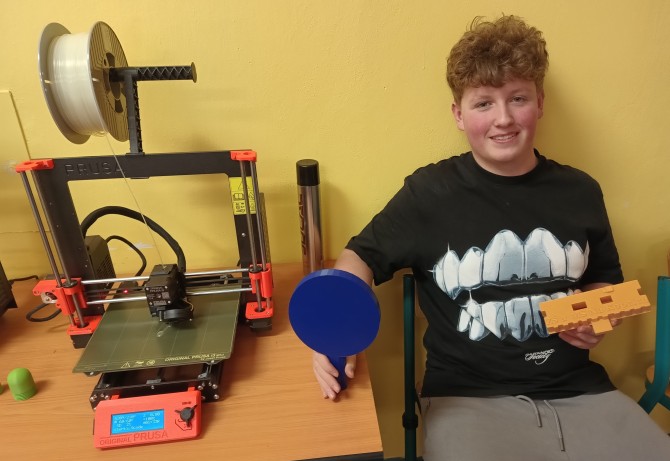 Na školních tiskárnách vznikly první povedené výtisky – několik šachových figur, různé přívěsky, model traktoru Zetor, dokonce model naší školy. Velký úspěch má také 3D tištěná pingpongová pálka, se kterou si žáci s chutí zahrají o přestávkách.
