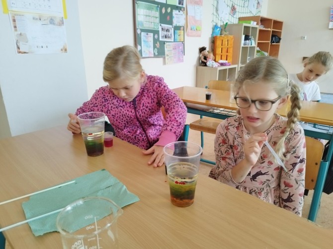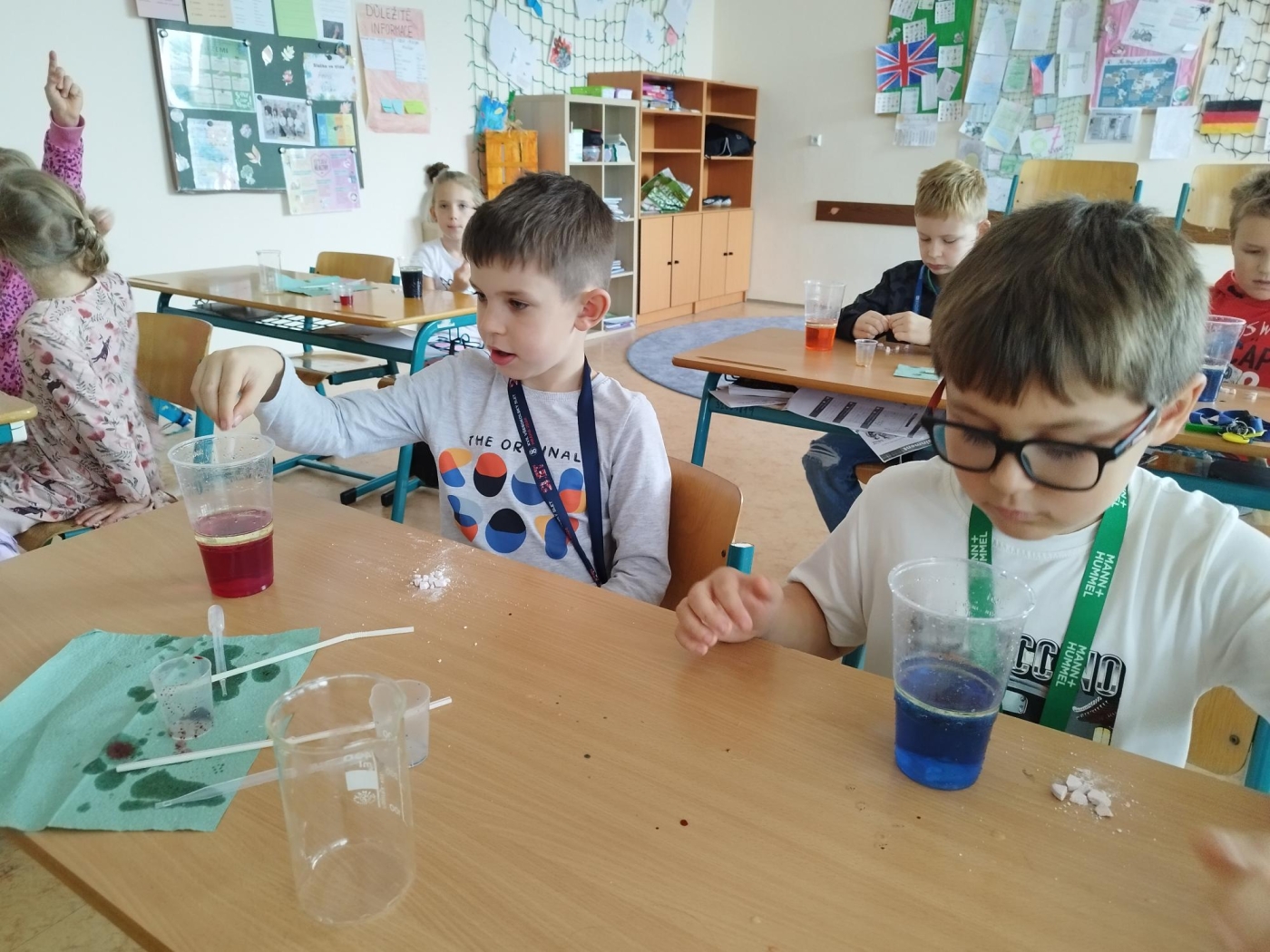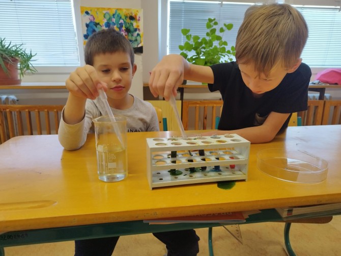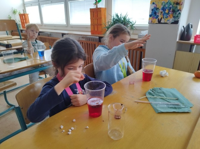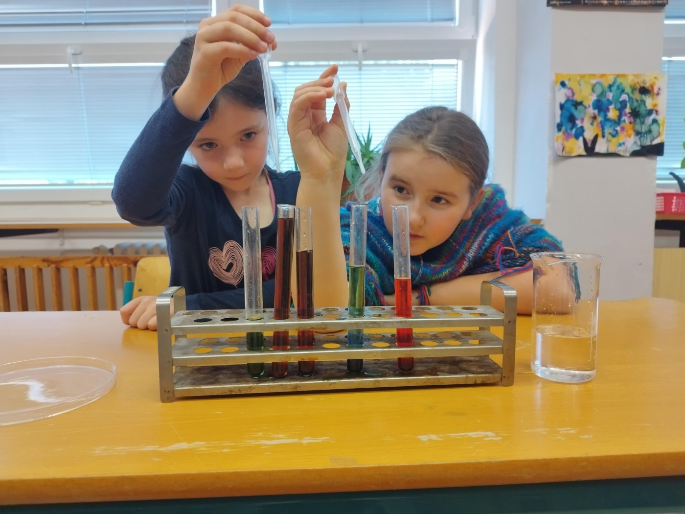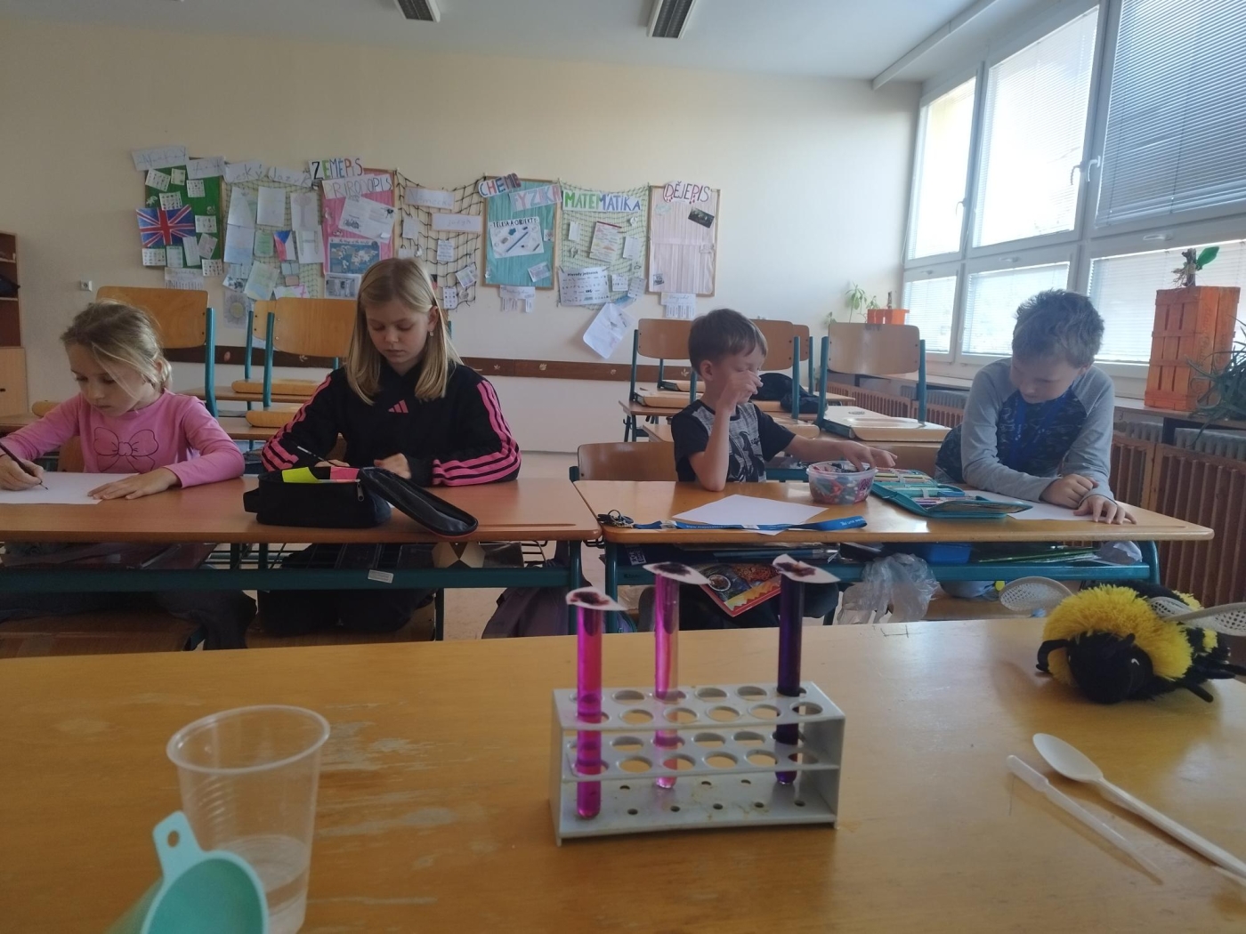 Od října se děti z prvního stupně mohou každý týden těšit na kroužek s názvem Věda nás baví, do kterého se zapojilo 11 malých badatelů. Cílem kroužku je ukázat dětem, že věda není jen o učených vzorcích, ale hlavně o pozorování, objevování a zkoušení.