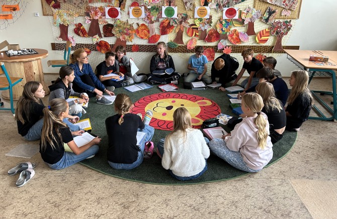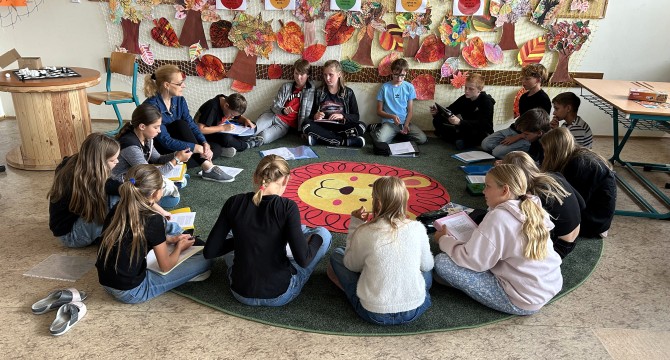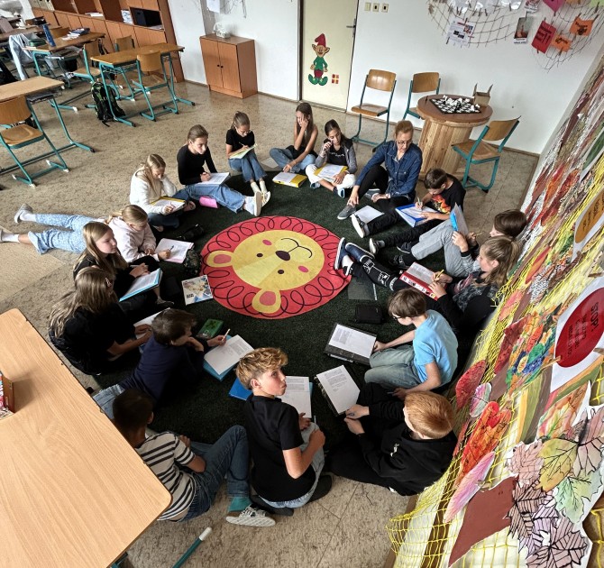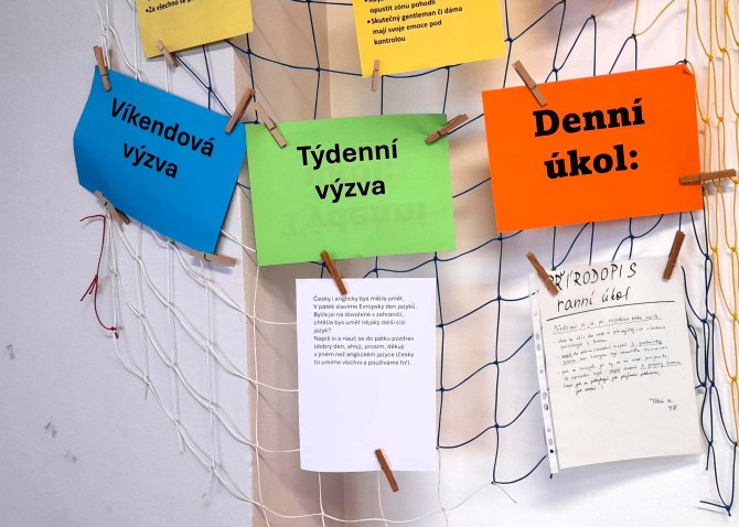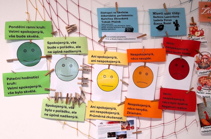 V pondělí ráno sedíme v kruhu a řešíme naši víkendovou výzvu, komunikujeme, předpovídáme, jaký bude týden, který nás čeká. Zadáme si a vysvětlíme týdenní výzvu. V pátek sedíme v hodnotícím kruhu. Jaký byl týden, který proběhl? Co se nám povedlo, zažili jsme úspěch? Máme co zlepšovat? Smajlíky na nástěnce nám umožní se ohodnotit. Splnili jsme týdenní výzvu? Mluvíme spolu, jsme aktivní. Jaká bude nová víkendová výzva? Ale nejen v pondělí a v pátek, ale také třeba ve výuce slohu probíhá výuka v kruhu, je pro nás příjemnější, všichni na sebe vidíme, můžeme diskutovat, i když vše má svá pravidla.
