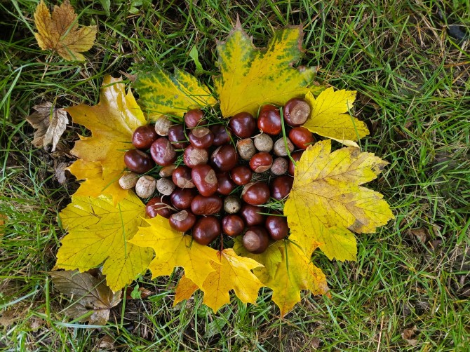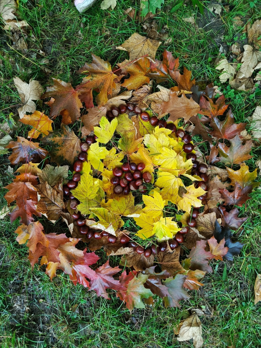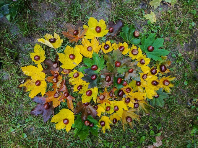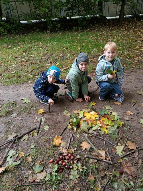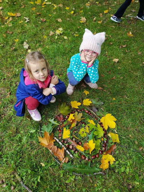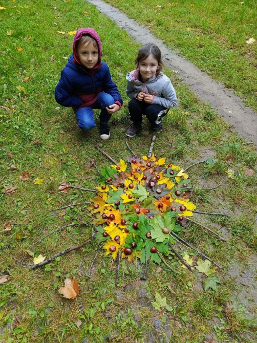 Podzimní hudba relaxační,pak výtvarka venku akční.Včelky se na procházku vydaly,přírodniny venku posbíralya obrazy krásné vznikaly!