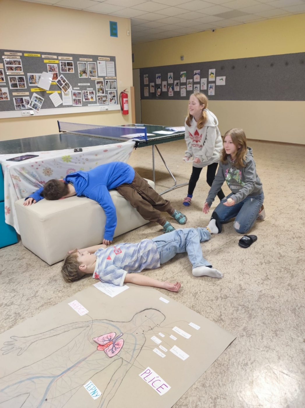 Na závěr každý tým představil svou soustavu a předvedl i mini scénku se zásadami první pomoci. Projekt nám ukázal, že učení může být zábava, a děti si přitom skvěle upevnily znalosti o lidském těle.