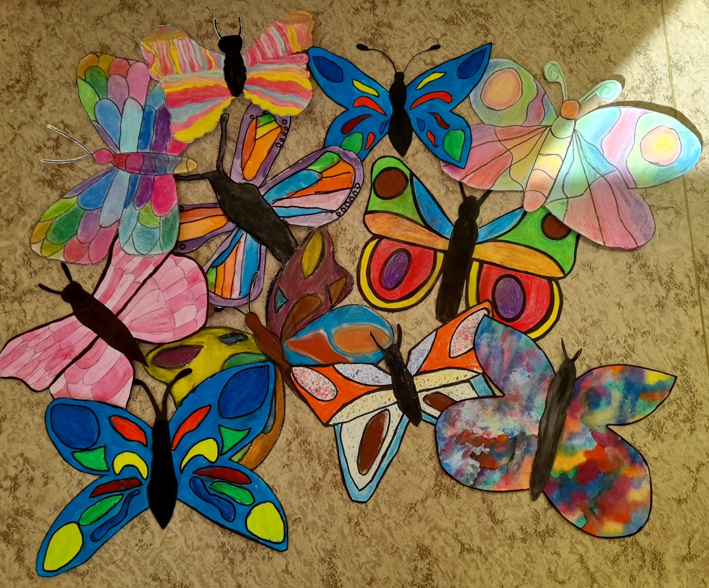 V pátek se učebna výtvarné výchovy proměnila v barevnou dílnu plnou fantazie. Tématem byli motýli a žáci 6. A měli volnou ruku v tom, jakou techniku zvolí. Někteří sáhli po klasických temperách a vodovkách, někteří si vzali pastely a jiní dokonce techniky kombinovali. Každý žák přistoupil k úkolu po svém, a tak vznikla pestrá sbírka motýlů. Hotové práce nyní zdobí nástěnku a připomínají, že kreativita nemá hranice.