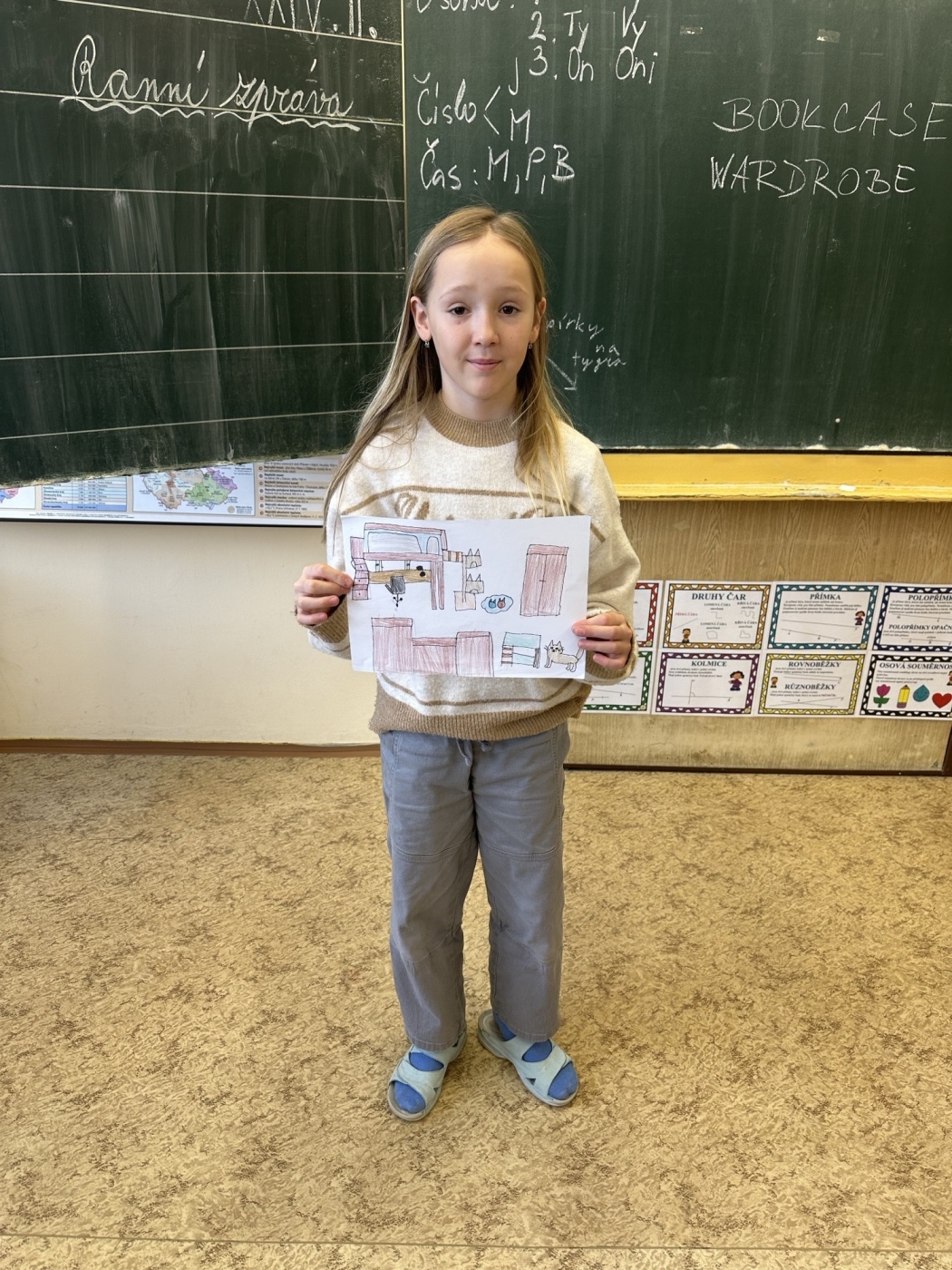 Žáci čtvrtého ročníku připravili v hodinách angličtiny projekt Můj vysněný pokoj. Hravou formou se naučili nová slovíčka a popisovali, jak by jejich ideální místnost vypadala. Každý žák svůj pokoj nejen namaloval, ale také o něm vymyslel několik vět. Své práce následně představili spolužákům a s nadšením o nich vyprávěli. Projekt přinesl spoustu radosti, kreativity a nových znalostí.