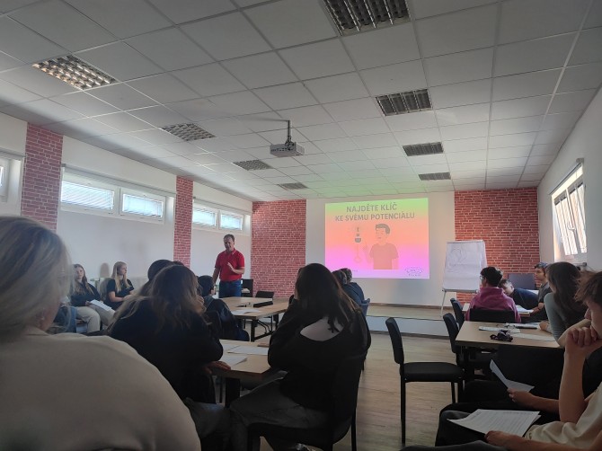 Žáci osmých a devátých ročníků se zúčastnili semináře „Najděte klíč ke svému potenciálu", který pro ně připravil pan Marek Pavlík. V úvodu si s žáky povídal o štěstí a úspěchu. Z toho vyplynulo téma, které mělo dětem ukázat, jak důležité je zvolit si správnou životní i pracovní cestu, která je bude těšit. Snažil se žáky motivovat k tomu, aby se pokusili hledat a rozvíjet talenty, které v sobě mají. Žáci se také dozvěděli něco o typech osobností. Toto rozdělení není úplně o inteligenci, jako spíše o znalostech, schopnostech a vůli člověka. Pan lektor měl pro žáky připravené také testy osobnosti, které si žáci předem vyplnili a následně se dozvěděli, co dané výsledky znamenají. Věřím, že si všichni tuto energickou a zajímavou přednášku užili.