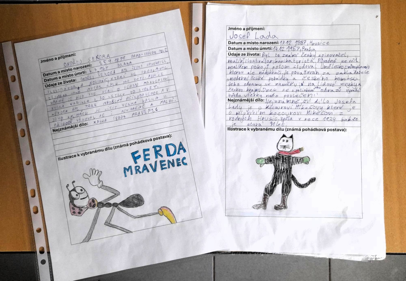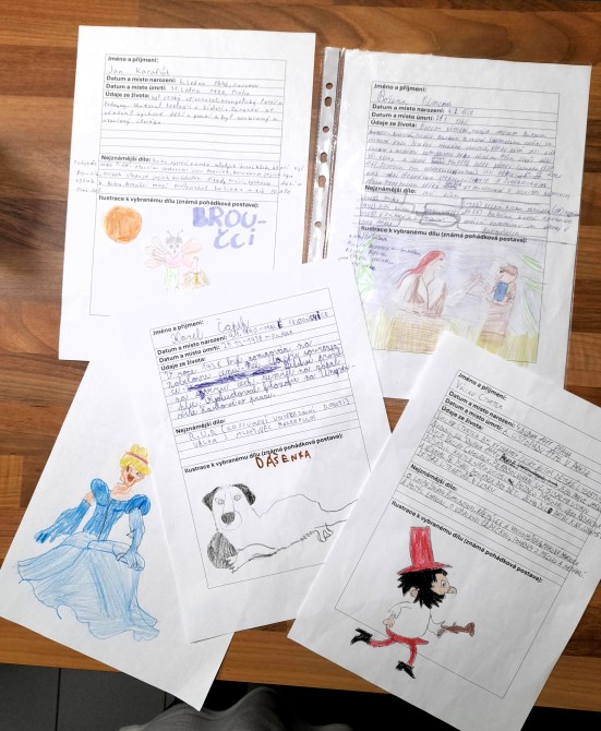 Blíží se závěr jedné velké kapitoly, ve které jsme se seznamovali s žánrem pohádek. Teoreticky jsme se s ní seznámili, četli a dokazovali prakticky na textech, že se o pohádku skutečně jedná. Porovnávali jsme podobné pohádky, a hlavně četli s porozuměním. Na závěr jsme si vyhledali nejznámější autory pohádek, jak české, tak i světové. Do pracovního listu jsme vepsali, kdy a kde se narodili, stručné informace ze života, a hlavně jejich díla. Pracovní list byl zakončen ilustrací – obrázkem známé pohádkové postavičky, kterou vymysleli. A tak se v jedné hodině sešli Rumcajs, kocour Mikeš, ošklivé káčátko, Ferda Mravenec nebo Pipi Dlouhá punčocha.