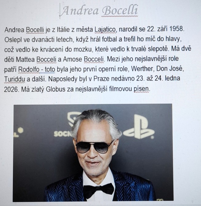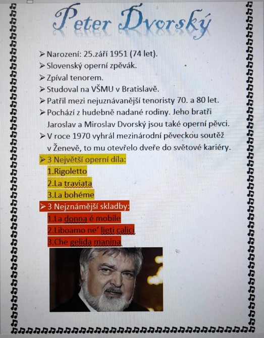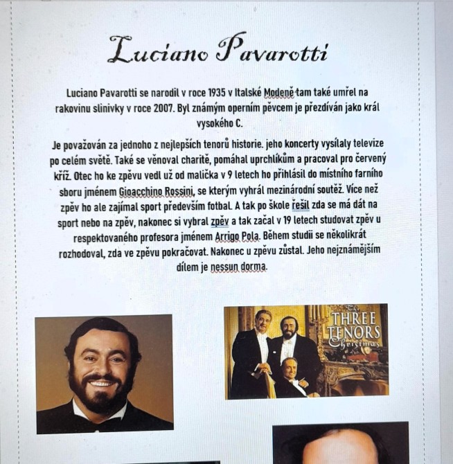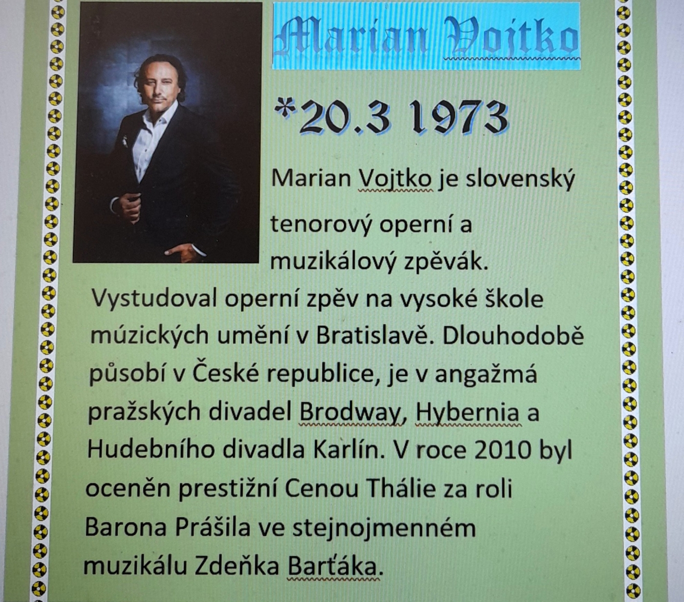 Když se zaposloucháme, jak každý z nás mluví, poznáme se podle barvy a výšky hlasu. O výšce hlasů jsme se bavili také v hudební výchově se šesťáky. Rozdělili jsme si je nejen na mužské a ženské, ale také podle rozsahu. Proto jsme si také připomněli některé operní zpěváky, nejen české, slovenské, ale i světové.