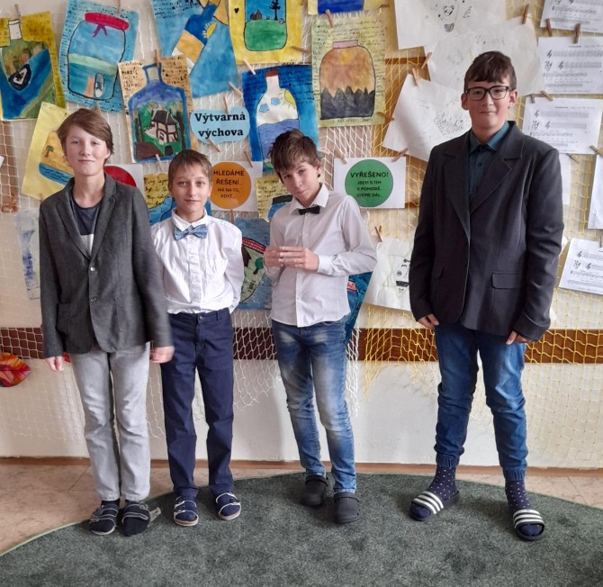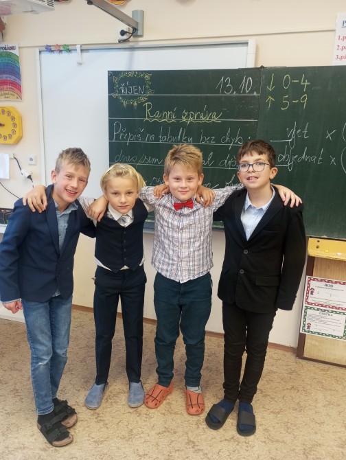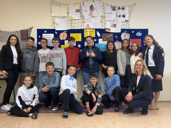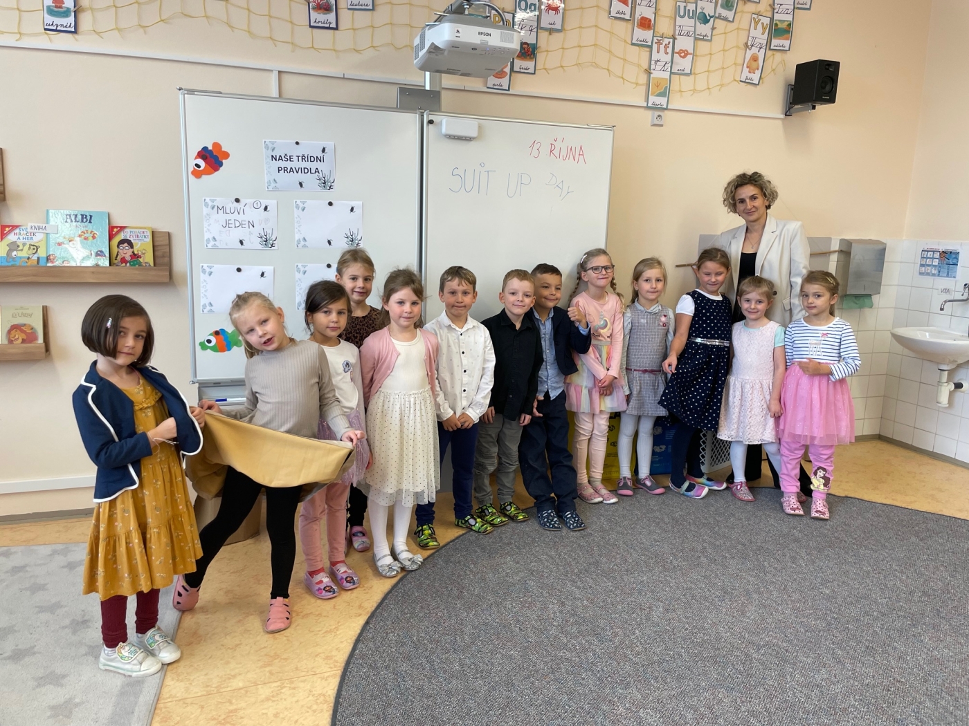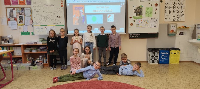 První společná akce, která propojila první i druhý stupeň, ale i všechny pracovníky školy, se jmenovala SUIT UP DAY aneb Den obleků. A jak můžete vidět, do akce se zapojil velký počet účastníků - děkujeme!