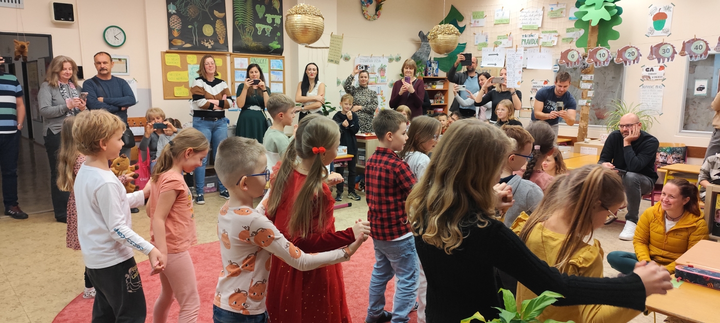 A je to, tréma opadla a my už teď jen s úsměvem vzpomínáme, jak jsme si užili podzimní besídku s rodiči. Nechyběly párové tance, jako Mazurka - neboť k podzimu "čtyři jabka" rozhodně patří, horká "Chocolate" a podzimní píseň. Tančilo se, recitovalo a na závěr tvořilo. Moc děkujeme rodičům za dobrůtky, které po vstoupení přišly všem dětem vhod. Bylo to perfektní a jako tečka bylo vypuštění všech světlušek z 2. B na louku před naší školou. Nádhera, jen pro rodiče trošku výzva - najít si zase svoji světlušku.