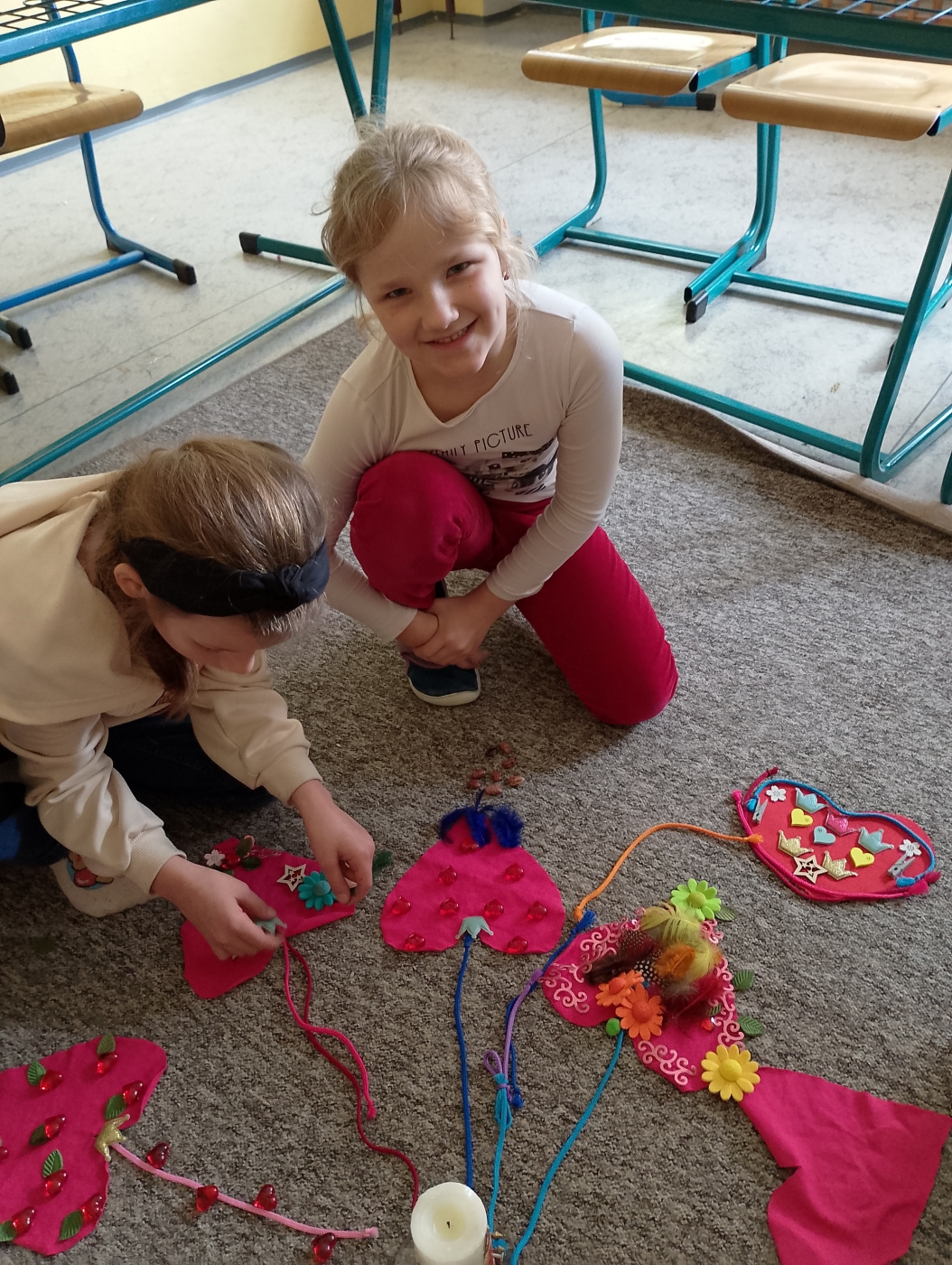 V únoru nám začala postní doba, ve které jsme vybízeni dát si nějaké předsevzetí... Možná to v nás vzbudí spíše nevoli... To už zase nebudu moct jíst sladkosti? Anebo koukat na televizi? S dětmi jsme si povídali o tom, jaké předsevzetí zvládneme, zda jsme schopni na sobě trochu zapracovat a udělat dobrovolně i to, co se nám zrovna nechce? Možná toho budeme schopni, pokud pochopíme, že každým naším krokem na cestě předsevzetí vlastně zdobíme své vlastní srdce... Když jsem schopen dát přednost, podělit se s kamarády, když třeba jednou týdně nachystám večeři pro celou rodinu, pak ozdobím svoje srdce tak, jako jsme si ho v hodině ozdobili i my.