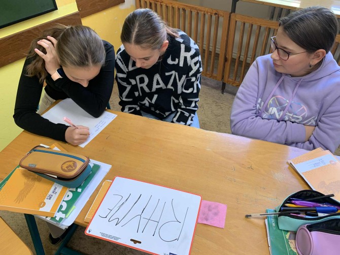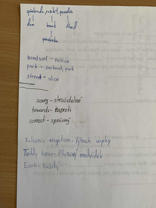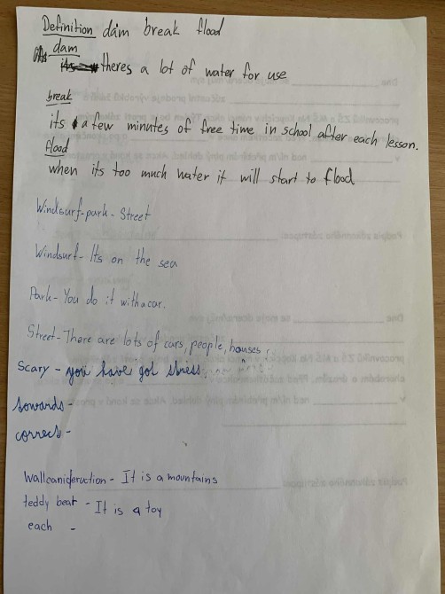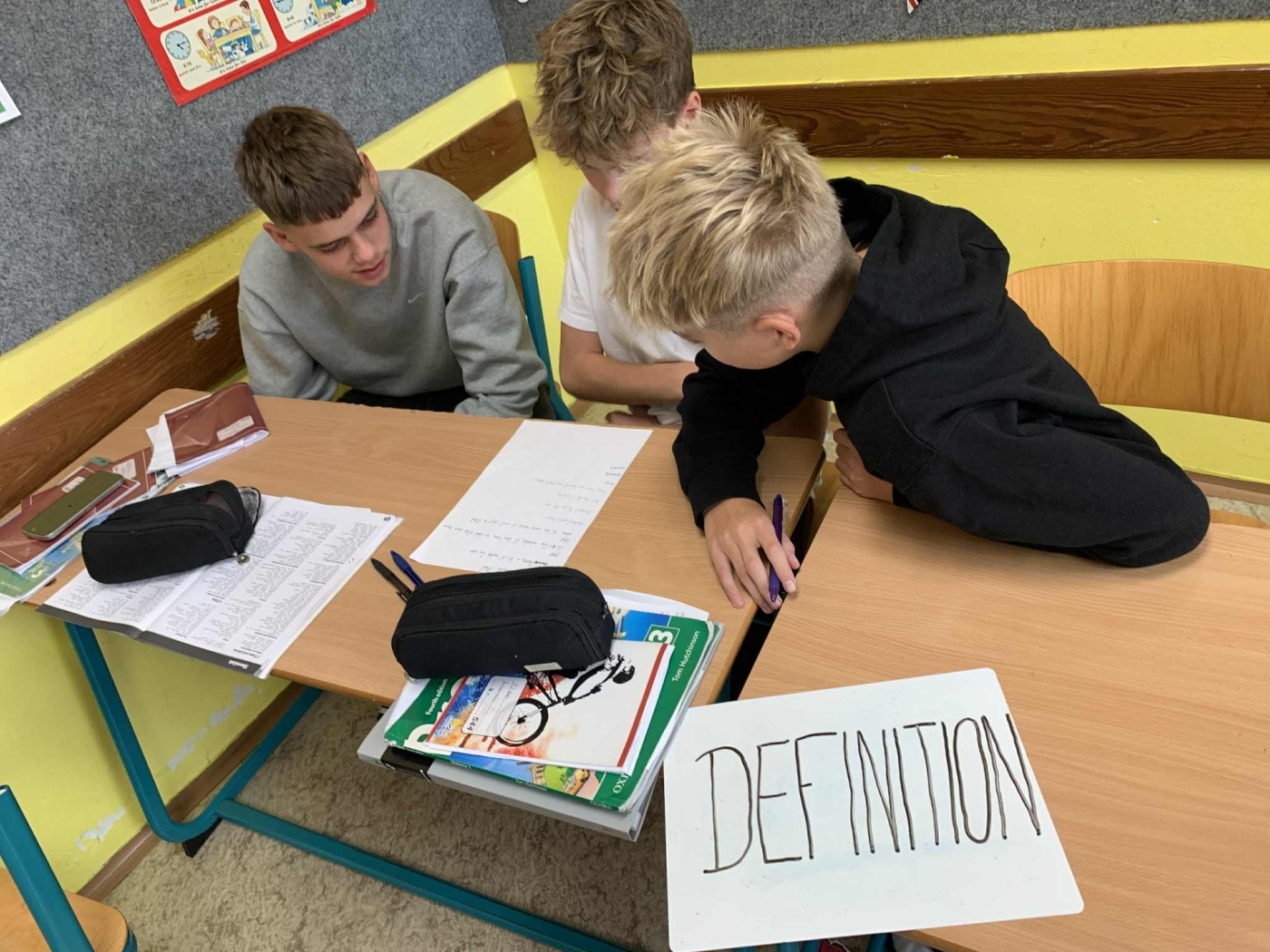 Slovíčka jsou v jazycích základním stavebním kamenem, proto se snažíme s nimi pracovat z různých úhlů pohledu. Tentokrát si osmáci vzali na paškál rýmování, definice, použití slov ve větě a prostý překlad. Zkuste si tipnout, co z uvedeného je pro nás největší výzvou. Pokud jste tipovali definice, trefili jste do černého.