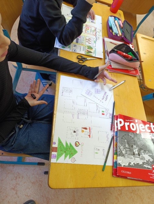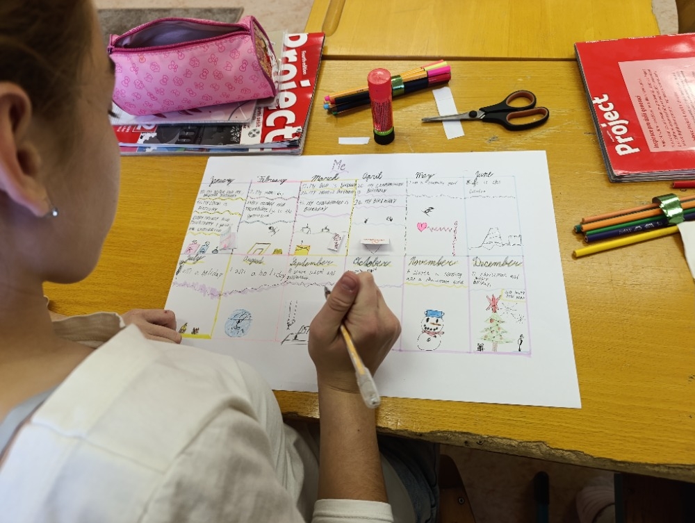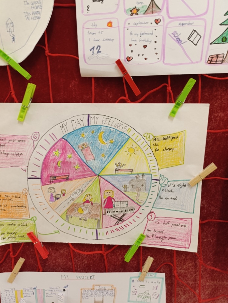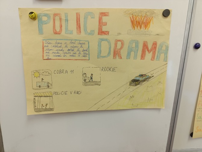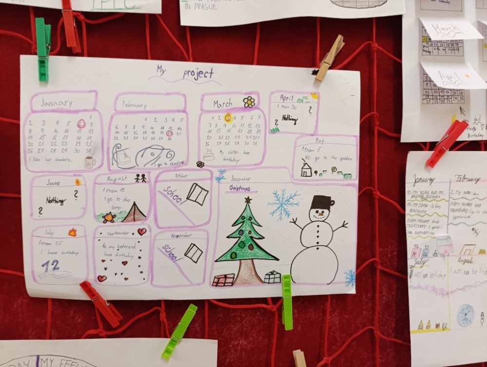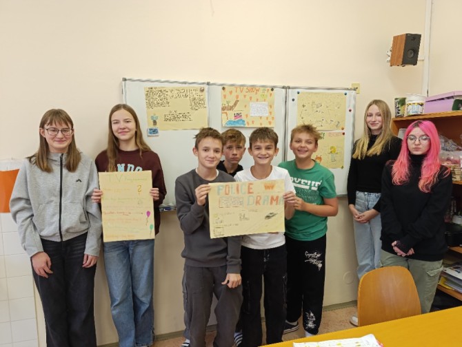 5. A na téma rodina, pocity a průběh dne, 6. A Můj rok a oslavy svátků,7. A a B pracovali na oblíbených televizních pořadech, 8. A vymýšleli detektivní příběh a procvičovali minulé časy a 9. A prezentovala vlastní témata o kterém vyprávěli anglicky svým spolužákům.
