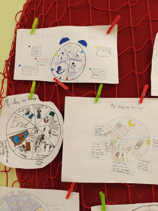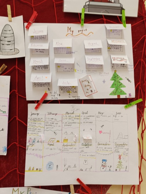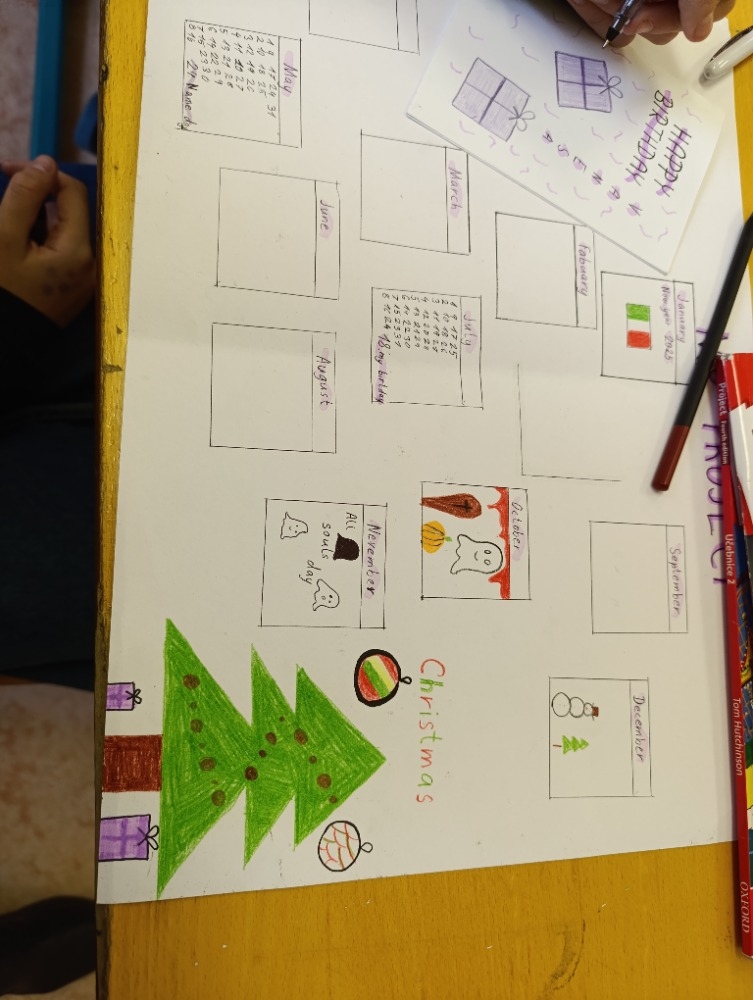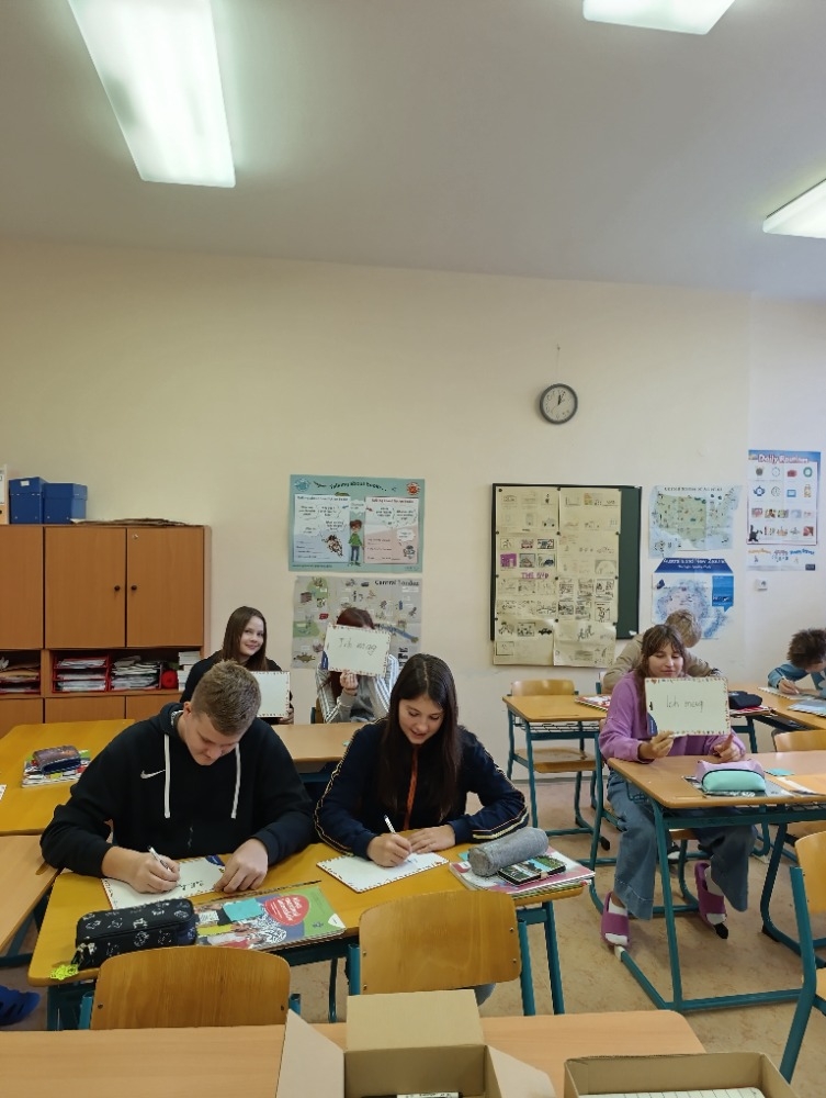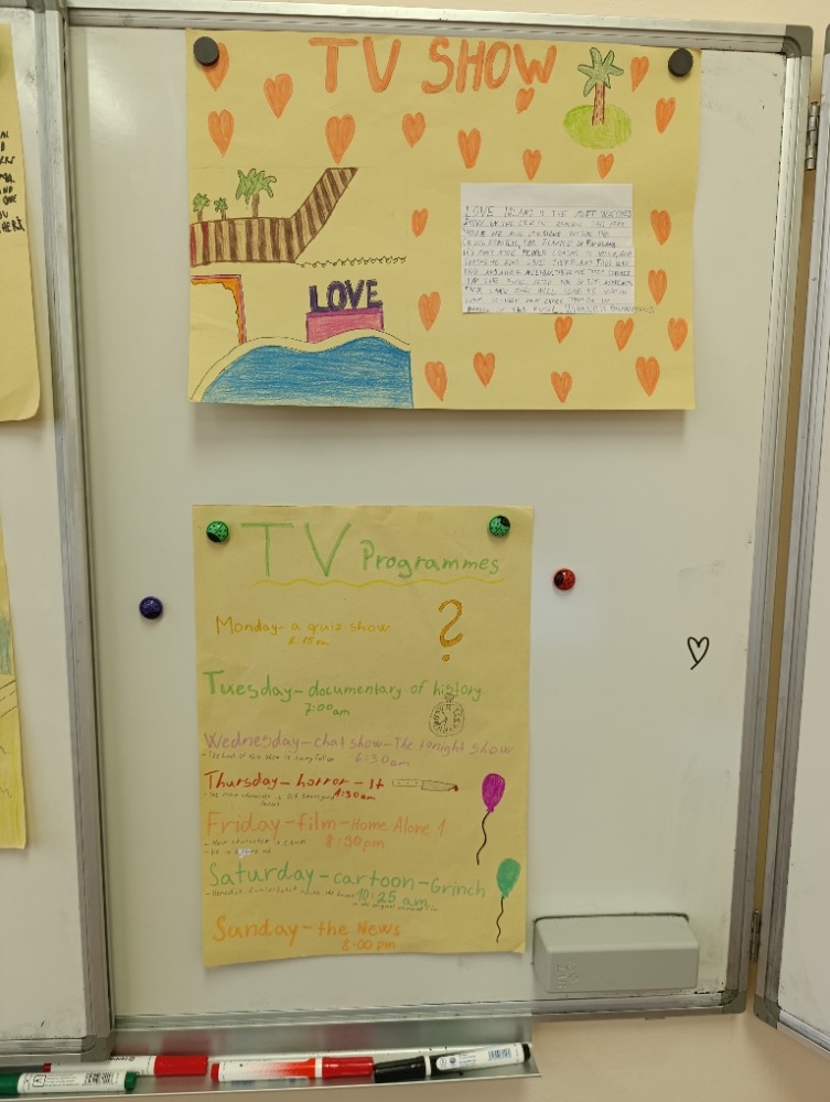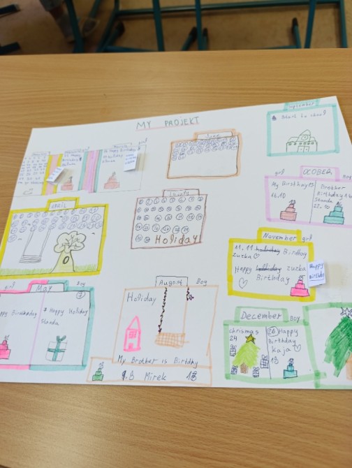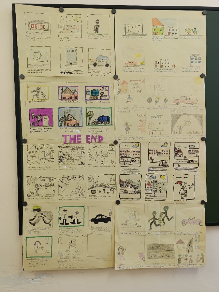 5. A na téma rodina, pocity a průběh dne, 6. A Můj rok a oslavy svátků,7. A a B pracovali na oblíbených televizních pořadech, 8. A vymýšleli detektivní příběh a procvičovali minulé časy a 9. A prezentovala vlastní témata o kterém vyprávěli anglicky svým spolužákům.
