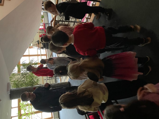 vyjeli jsme busem,ocitli se pod lavinouse vším nóbl vkusem.Jihlavskému divadluděkujeme velice,ve foyer na schodech sundali jsme čepice.