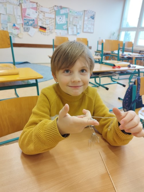 Na úplný závěr čekala děti zdravá odměna v podobě křupek, na kterých si každý mohl najít svého vědce nebo vědkyni. Tato malá pozornost byla poděkováním za jejich zvídavost, nadšení a chuť objevovat nové věci a zároveň milým zakončením prvního pololetí plného pokusů, objevů a radosti z vědy.