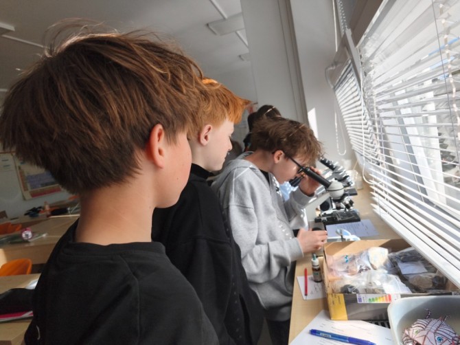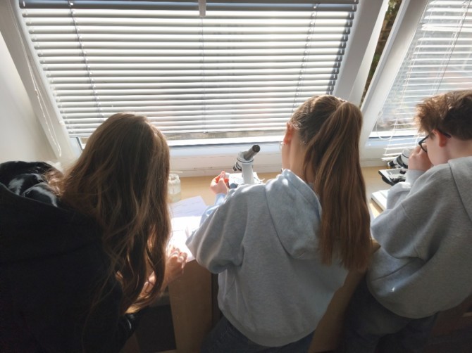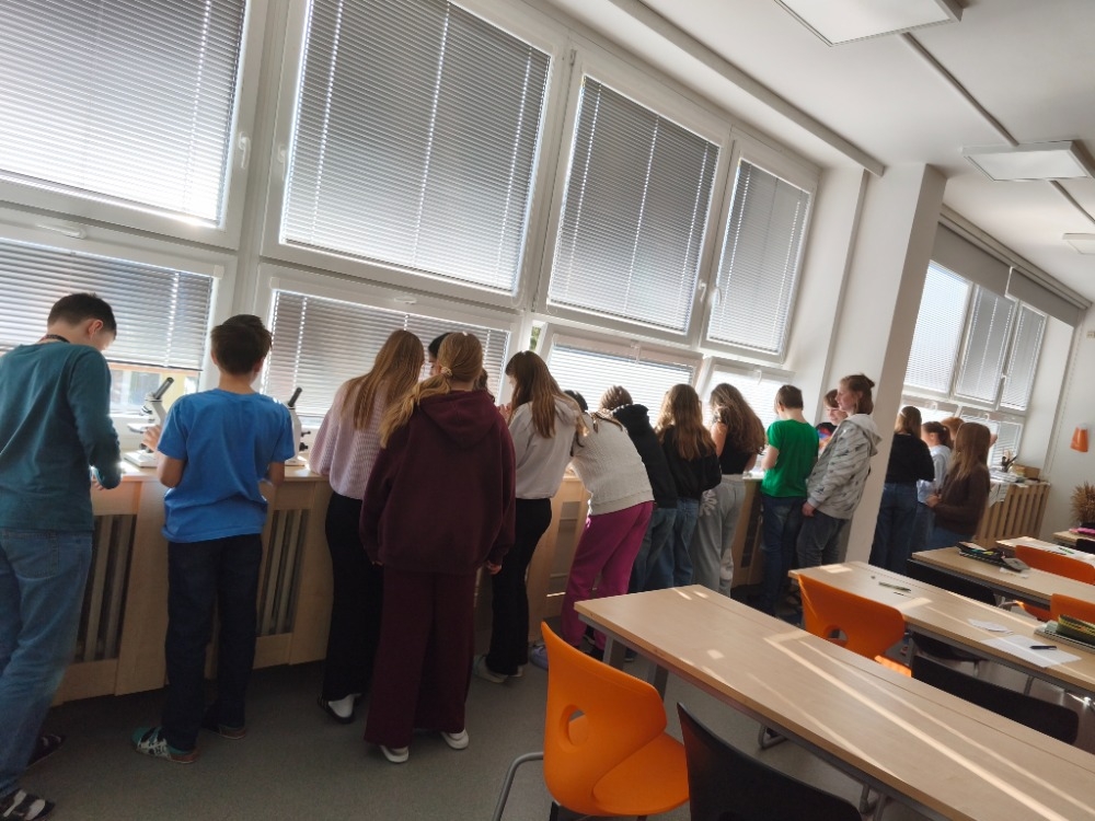 V hodině přírodopisu se žáci 6. A věnovali laboratorní práci na téma řasy. Z kůry stromu se jim podařilo vypreparovat zrněnku, kterou následně pozorovali pod mikroskopem.