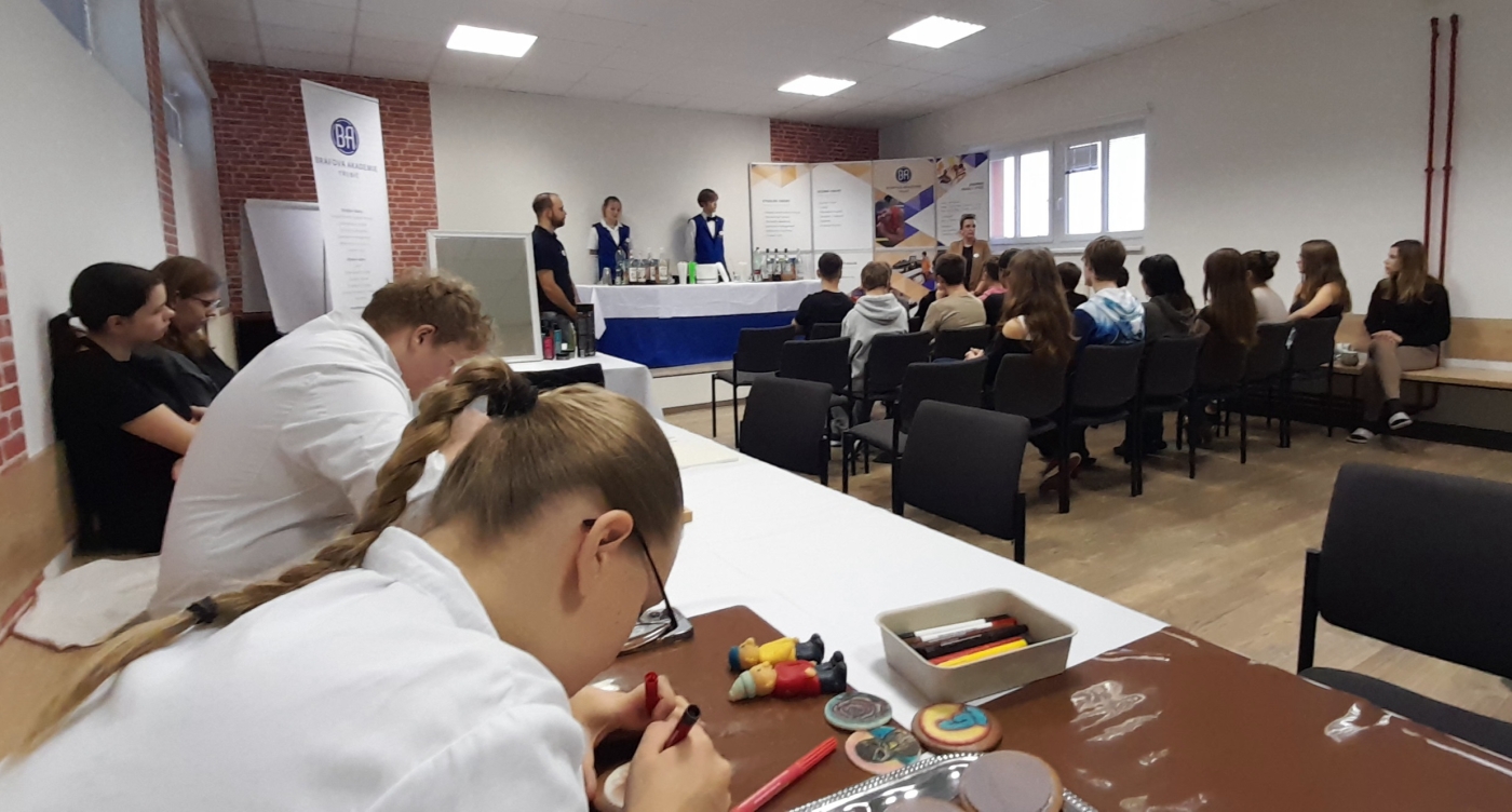 Ve čtvrtek 13. listopadu přišli do naší školy zástupci učitelů a žáků různých oborů Bráfovy akademie Třebíč, aby zde představili učební a studijní obory, které tato škola nabízí. Nabídka je bohatá a žáci si mohli dovednosti z jednotlivých oborů vyzkoušet. Do aktivit se všichni nadšeně zapojili, proto věřím, že mnozí získali inspiraci pro volbu svého budoucího studia. Celá akce proběhla v příjemné atmosféře a přinesla spoustu nových poznatků.