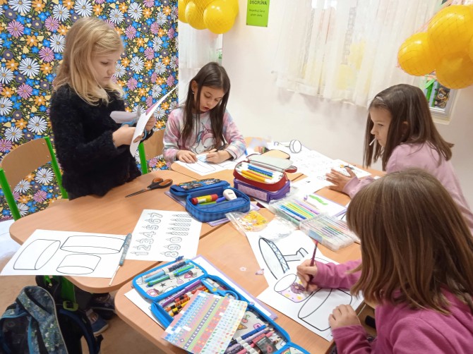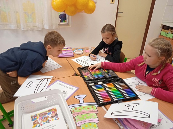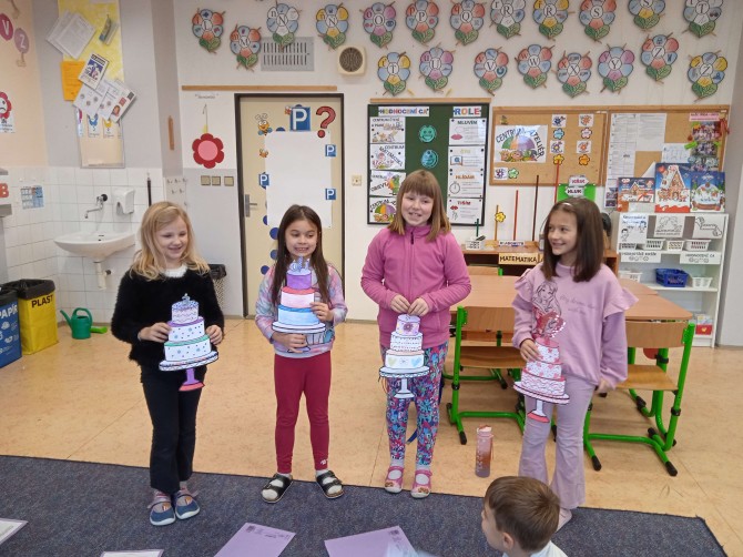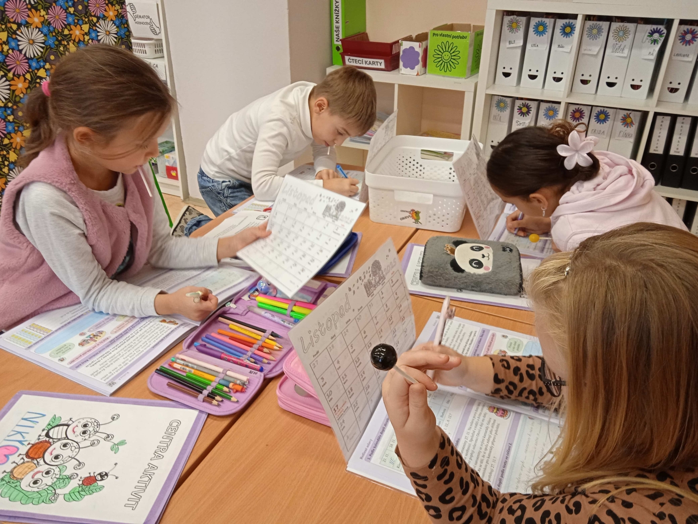 Listopad se u druháčků z Kvítečkova nesl v duchu rodiny. Každé centrum aktivit nabídlo jiný pohled na to, co rodina znamená. V centru matematika se naši malí nakupující vydali do obchodů a počítali ceny nákupů. V centru ateliér se zpívalo, slavilo a tvořilo – děti zkoumaly rodinné svátky, naučily se písničku pro oslavence a nechyběl ani narozeninový dort, i když jen z papíru. V centru objevy se pracovalo s kalendářem a vznikaly originální narozeninové pozvánky. A v centru čtení a psaní se druháčci stali vypravěči – skládali jeden den rodiny krok za krokem a proměnili ho v komiks plný nápadů. Naši druháčci tak během listopadu objevovali, že rodina není jen slovo – je to místo plné radosti, oslav, příběhů i společných zážitků.