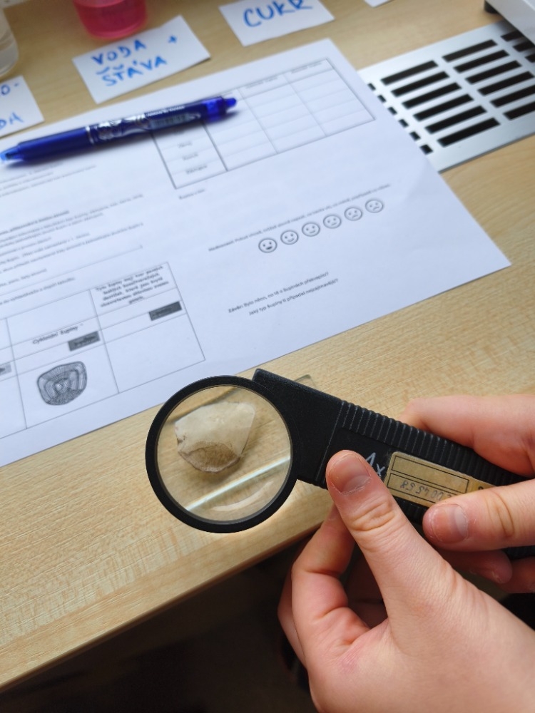 Na začátku hodiny žáci pozorovali kapří šupinu lupou i pod mikroskopem, všímali si jejího tvaru a uspořádání. Poté vyhledávali informace o jednotlivých typech šupin, zjišťovali, jak se od sebe liší tvarem, stavbou i funkcí, a které druhy ryb jsou pro jednotlivé typy charakteristické. Své poznatky zapisovali do pracovního listu.