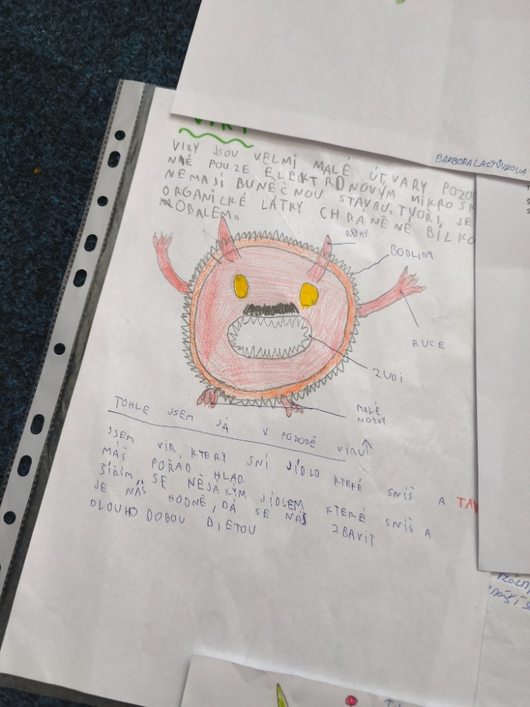 Žáci 6. ročníku se v hodinách přírodopisu věnovali tématu virů trochu netradičně. V rámci ranních úkolů dostali prostor zapojit fantazii a vytvořit si vlastní virus.