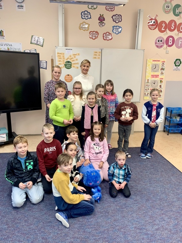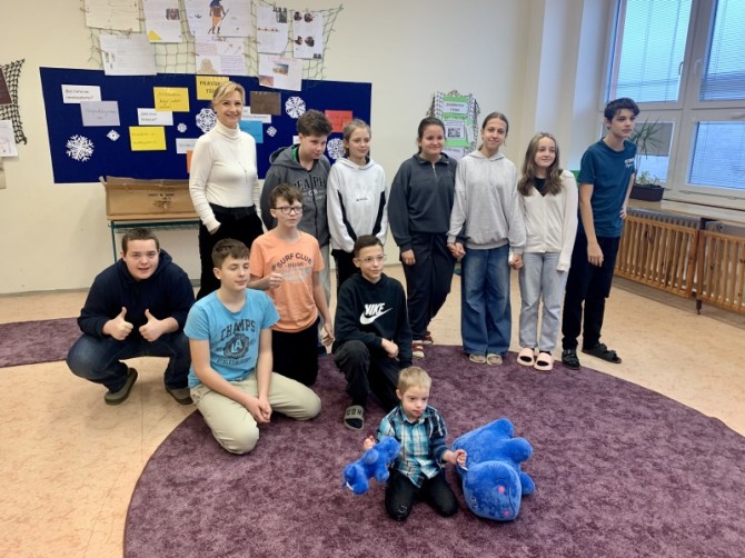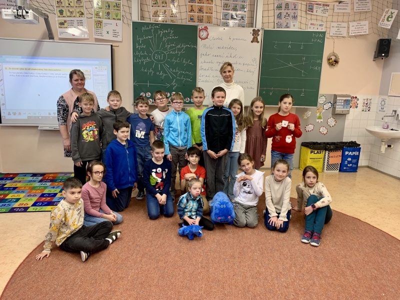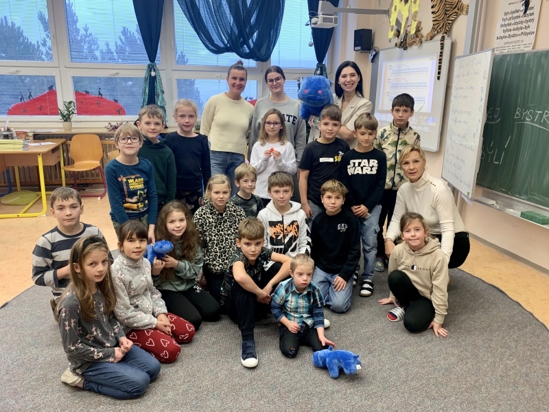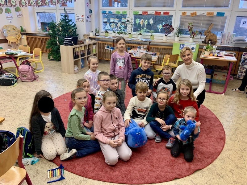Ve čtvrtek 4. 12. naši školu navštívila paní ředitelka NF Modrý hroch Monika Chasáková, abychom jí předali peníze, které se nám společnými silami podařilo vybrat během listopadové charitativní akce Týden boje proti zákeřným chorobám a úrazům. Setkali jsme se i s Filípkem Paděrou, na kterého byla naše sbírka zacílená. Filípkovi NF Modrý hroch proplatí velmi nákladný třítýdenní rehabilitační pobyt v Dětské léčebně Boskovice.