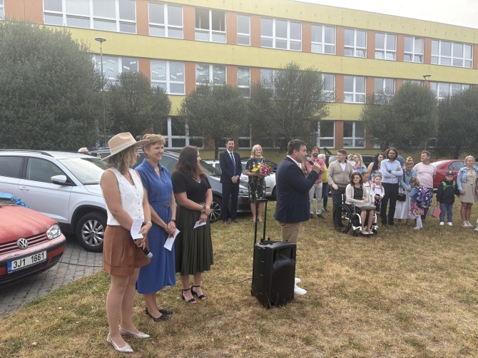 První školní den začal pro naše prvňáčky v 8 hodin před školou, kde se sešli spolu se svými rodiči, prarodiči a hlavně paní učitelkami, vychovatelkami a asistentkami. Svojí návštěvou nás poctil i pan starosta Pacal se svými kolegyněmi z radnice. Po krátkém uvítání pana ředitele školy Bártla a pozdravení pana starosty si děti poslechly zveršovaný pozdrav učitelek prvních tříd. Poté se všichni prvňáci spolu se svými rodinami odebrali do svých tříd, kde si užili program jejich prvního školního dne. Ať na tento den vzpomínají celý život s co nejlepšími pocity a ať se jim všem ve škole daří!