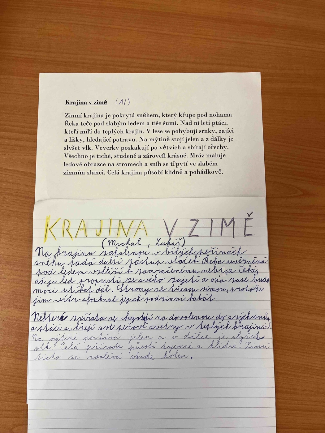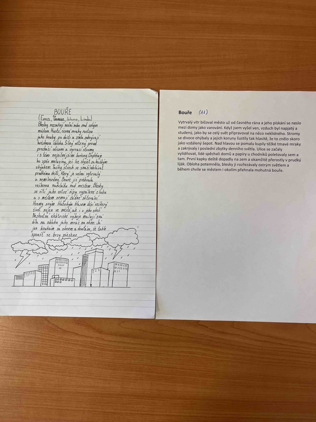 Texty žáků dýchaly životem, jejich metafory byly originální a často překvapivě hluboké, i když se občas objevila drobná stylistická neobratnost. Oproti tomu výtvor AI byl chladně efektivní a velmi rychlý, každé slovo bylo pečlivě váženo.